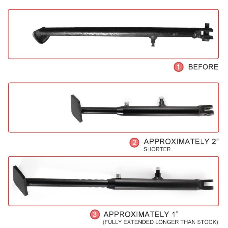 Fitment: The Xitomer Motorcycle Adjustable Kickstand Fit for XR650L 1993-2023. Material: The Xitomer Motorcycle Adjustable Sidestand is made of Q235 cast iron, which is much stronger than Alloy. Durable:Motorcycle side bracket made of aluminum, anodized, not easy to rust, wear, high strength, corrosion resistance, durable. Adjustment DesignThe adjustable bracket allows you to shorten the kickstand while lowering your vehicle without having to worry about replacing stock support. Kickstand Design: Kickstand has Larger Plates at the End to Avoid Sinking into the Soft Sand or Ground when You Parking.. Placement on Vehicle: Left. Easy Installation:Easy to Install, Instruction of Installation is NOT Included.Other fine products