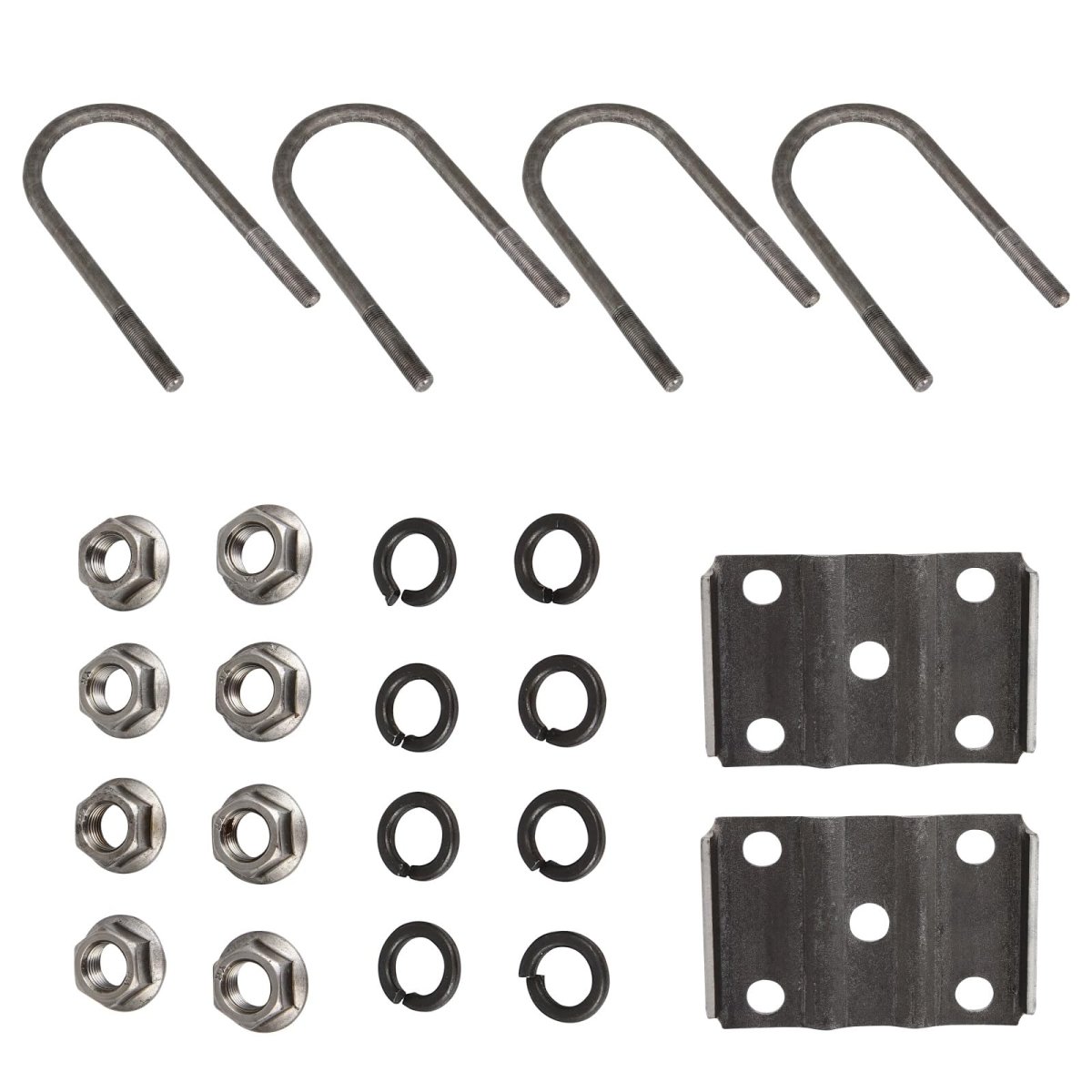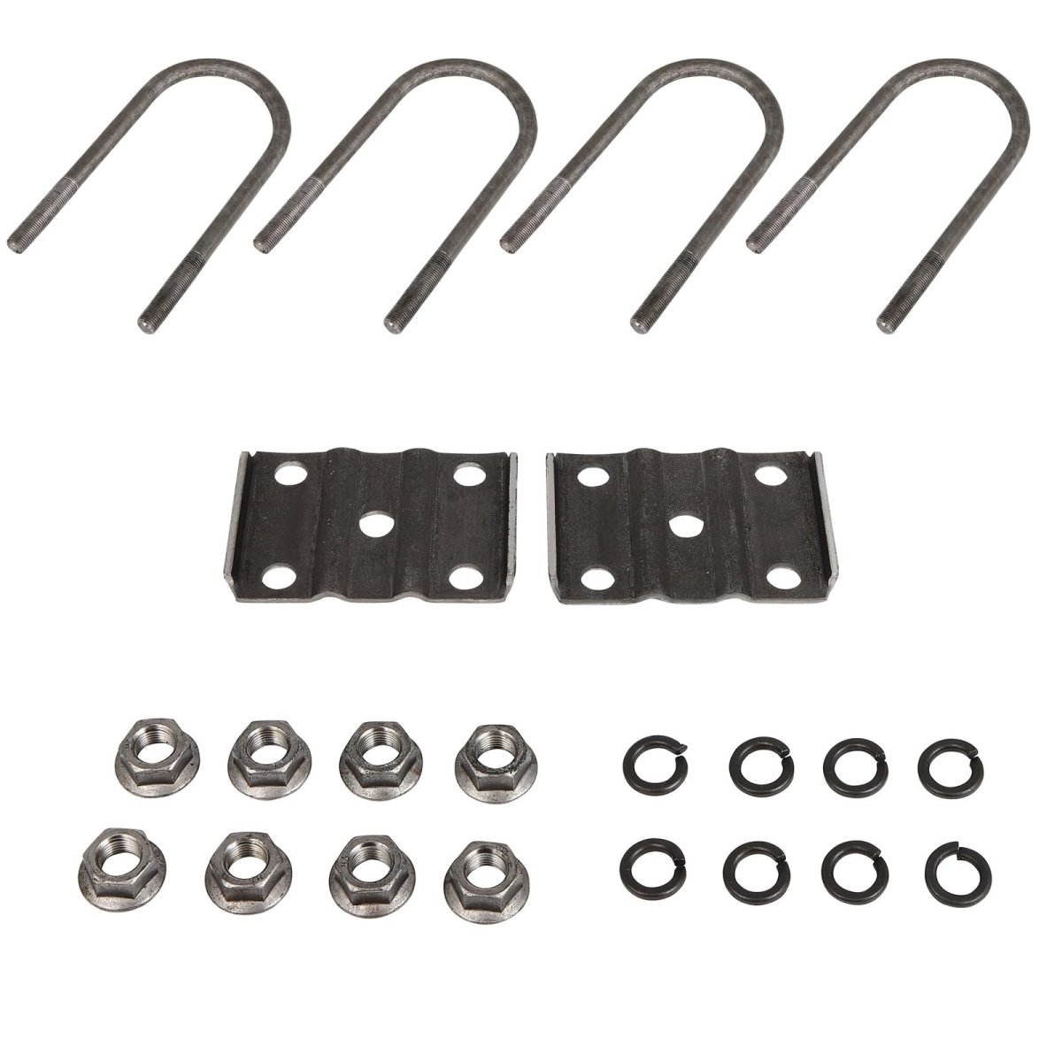 [Available Vehicle]- Trailer axle u bolt kit for Double-eye Springs Tandem Axle Suspension (5200-7000 pound Axles). [Leaf Spring Specs]2x tie plates for 1-3/4" Double Eye Leaf leaf springs,4x 7" long U bolts, 1/2" U bolts diameter,8x 1/2"-20 hex nuts. [UPGRADED QUALITY]Made of metal materials, for double eye springs tandem axle, very suitable for outdoor. [Convenience] These axle trailer shackle bolts kit surface of the black layer the pr-otection is high, keeping loads secure and ensuring smooth trailer operation. [Easy Installation] This trailer axle suspension kit is engineered for easy installation, providing an easy installation experience for your trailer.And the kit ensures long-lasting performance even under heavy loads and rough road conditions, red-ucing the need for frequ-ent replacements.Other fine products