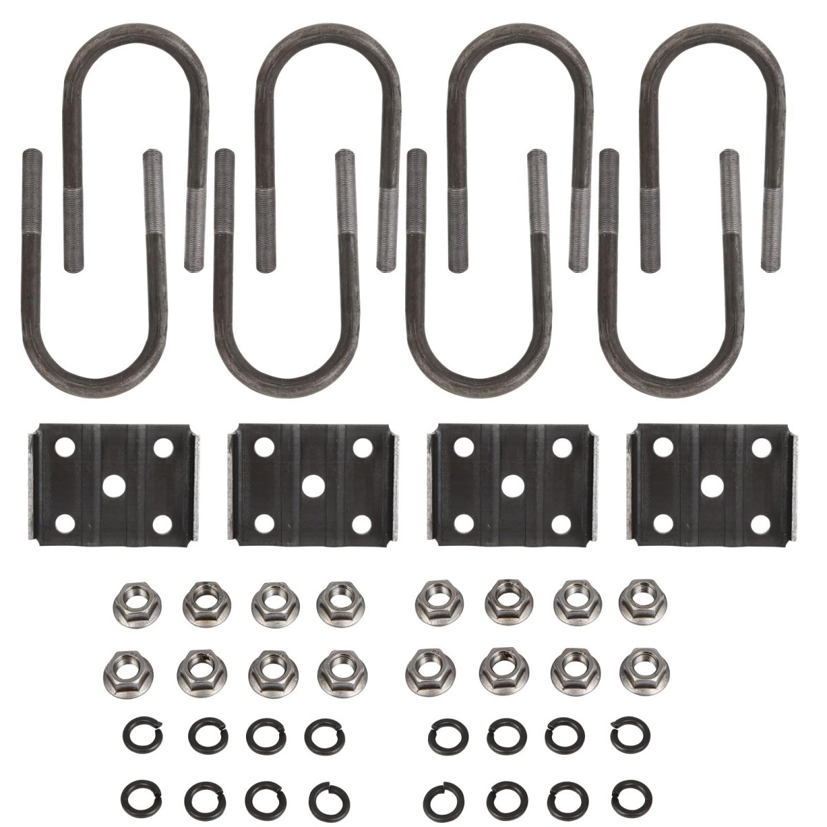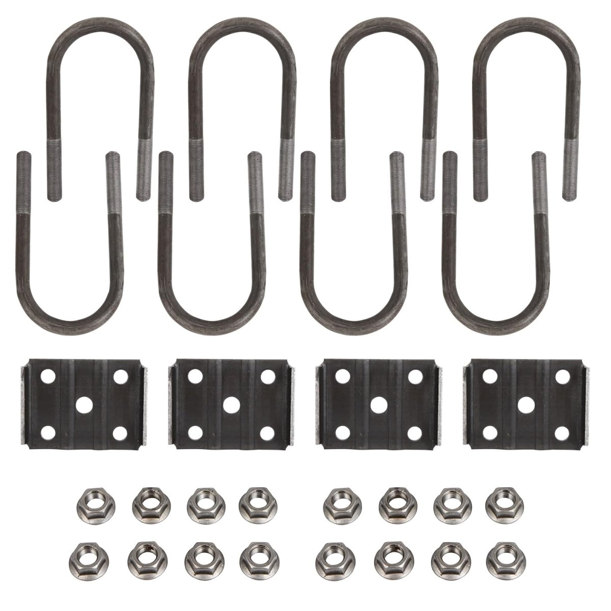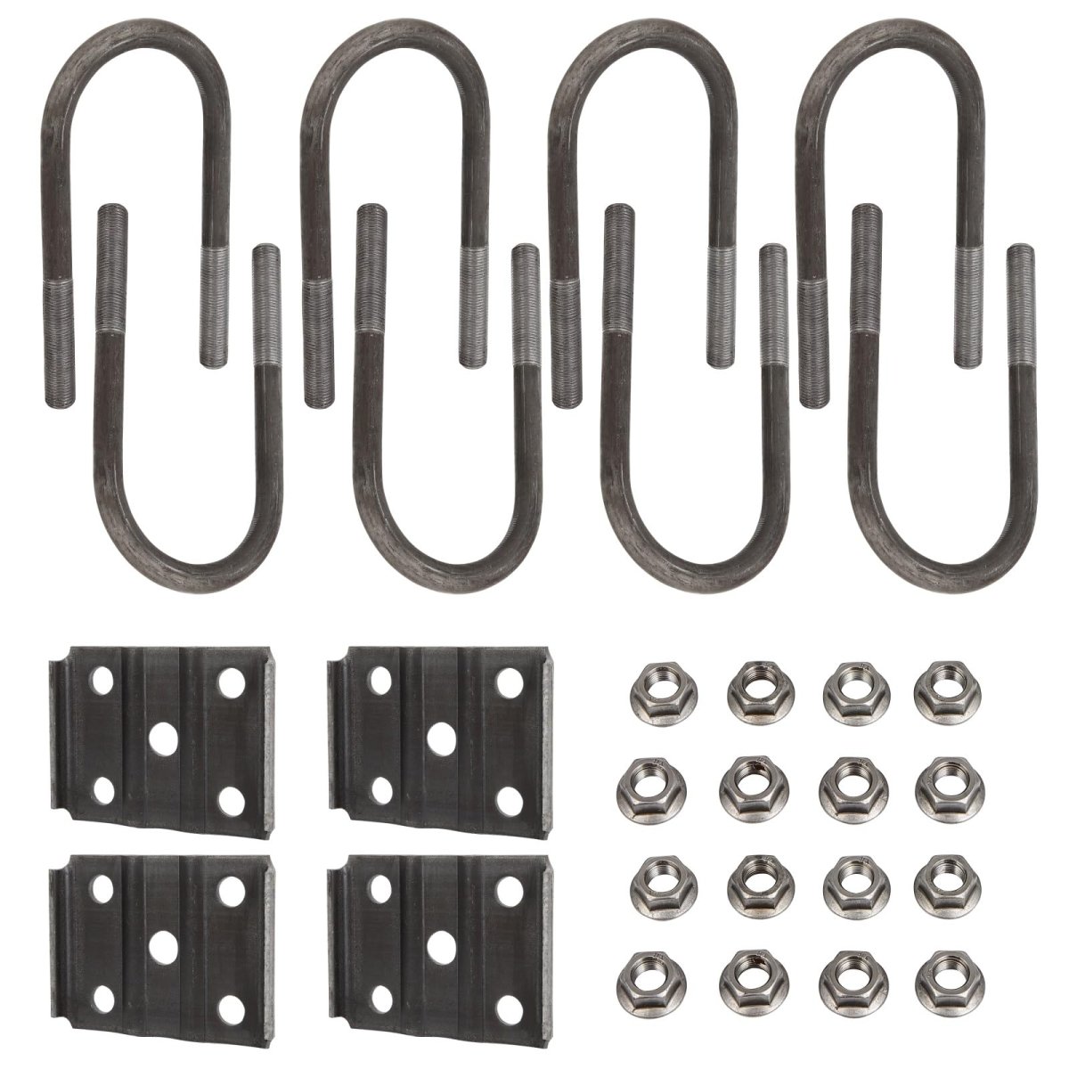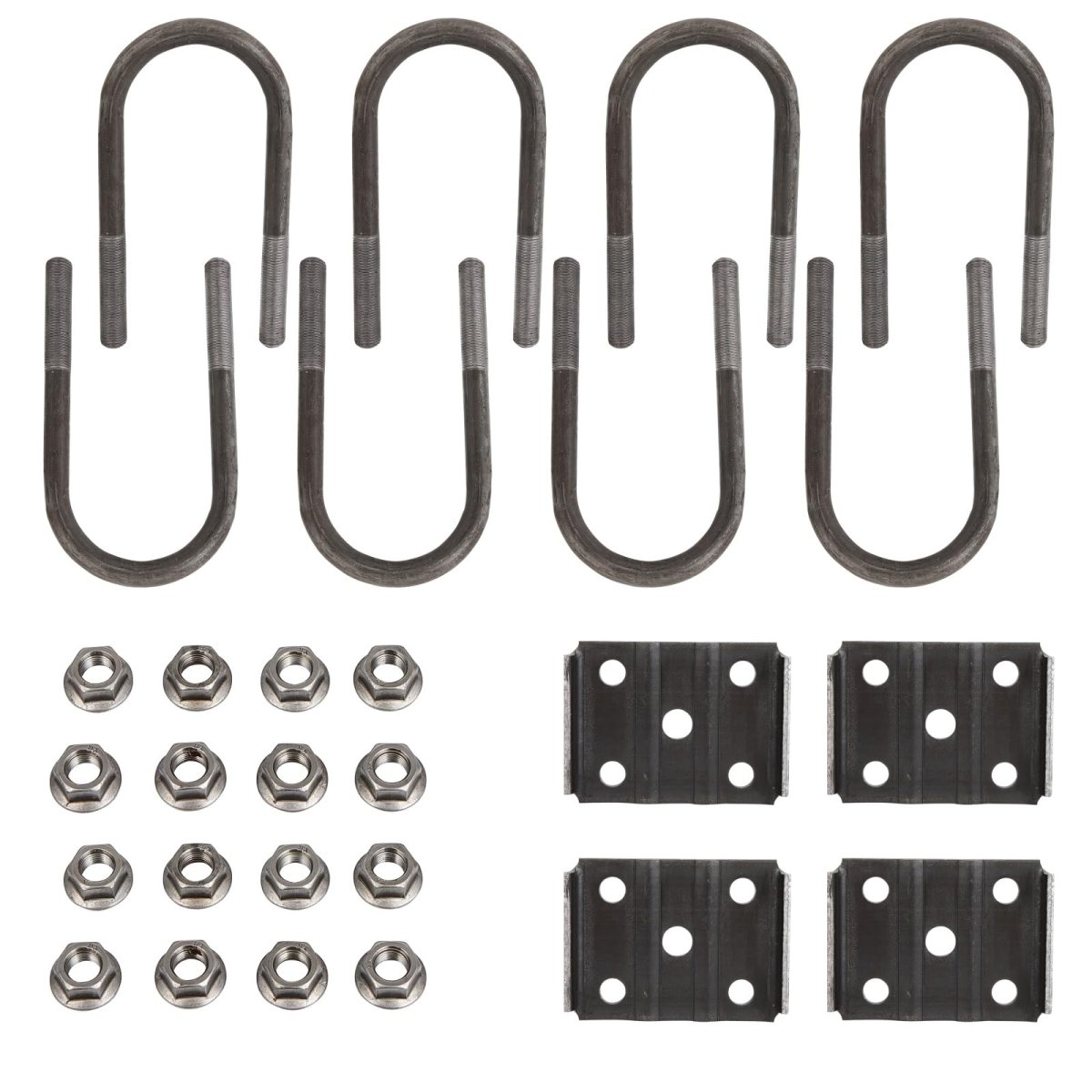 [Available Vehicle]- Trailer axle u bolt kit for Double-eye Springs Tandem Axle Suspension (3500 pound Axles). [Leaf Spring Specs]4x tie plates for 1-3/4" leaf springs,8xU bolts,1/2" U bolts dia.,16x 1/2"-20 hex nuts, For 3,500lbs round axle which axle beam dia 2-3/8". [UPGRADED QUALITY]Made of metal materials, for double eye springs tandem axle, very suitable for outdoor. [Convenience] These axle trailer shackle bolts kit surface of the black layer the pr-otection is high, keeping loads secure and ensuring smooth trailer operation. [Easy Installation] This trailer axle suspension kit is engineered for easy installation, pro-viding an easy installation experience for your trailer.And the kit ensures long-lasting performance even under heavy loads and rough road conditions, red-ucing the need for frequ-ent replacements.Other fine products