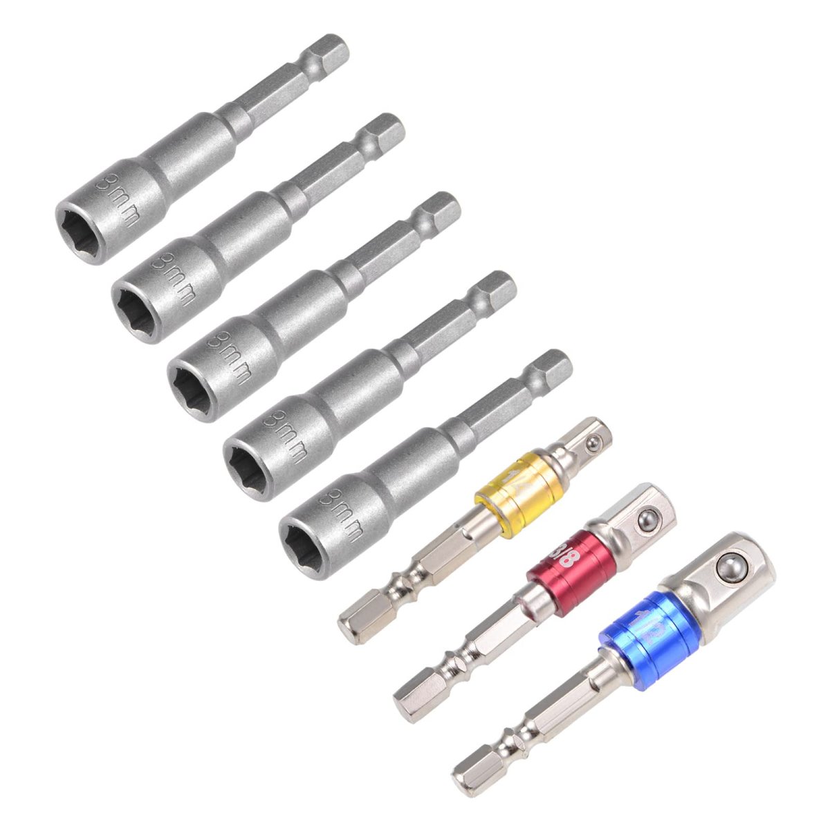 - 1 4 3 8 2 Impact Grade Socket Adapter Set Hex Shank Bit Quick-change 8mm Magnetic Nut Sockets Driver