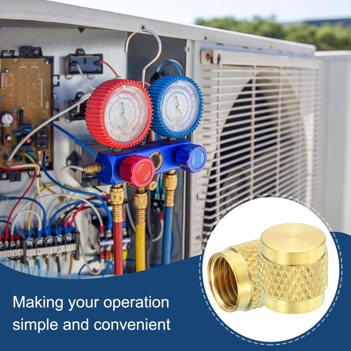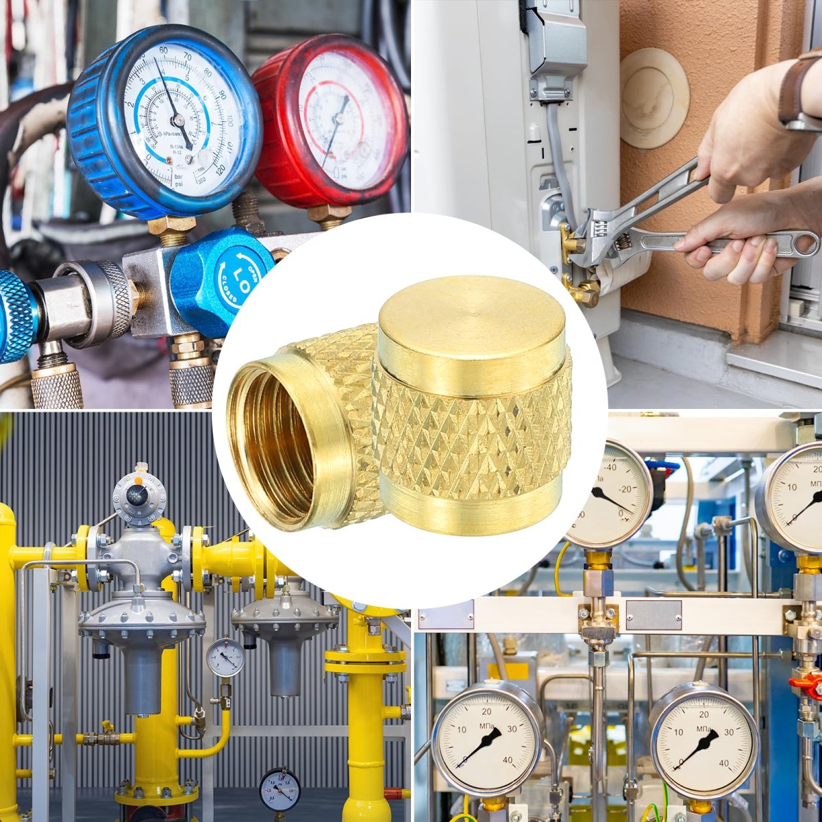 [Product Introduction]: Brass tone, Inner Diameter: 9.5mm/0.37", Outside Diameter: 13mm/0.51", Height: 13mm/0.51", 1/4" female flared thread. Pack of 8. Optimal for AC & HVAC systems, a must-have for maintenance. [Durable Material]: Constructed from brass, it offers exceptional durability and resistance to wear and tear. This sturdy material makes the valve cap long-lasting, able to withstand different environmental conditions, and frequently use. [Easy Installation]: Easy to use, simply screw and tighten by hand. No tools are needed. The user-friendly design enables quick installation, saving maintenance time. [Widely Used]: With a rubber seal, it blocks refrigerant leaks. It is widely used in maintaining or repairing auto/car air conditioners, household air conditioners, and HVAC systems, ensuring energy efficiency and system lifespan.Other fine products