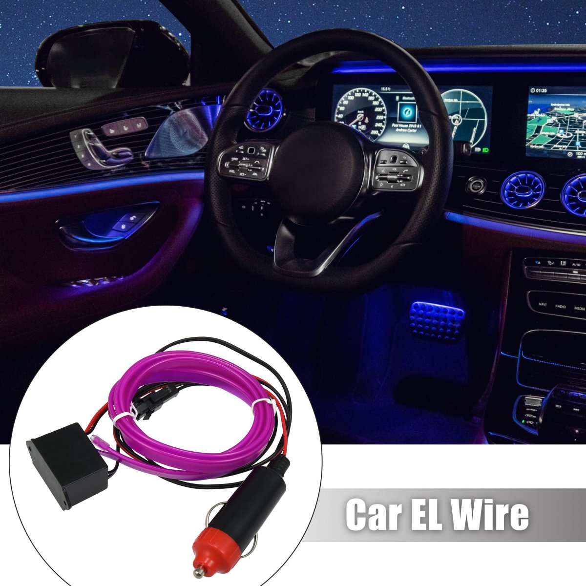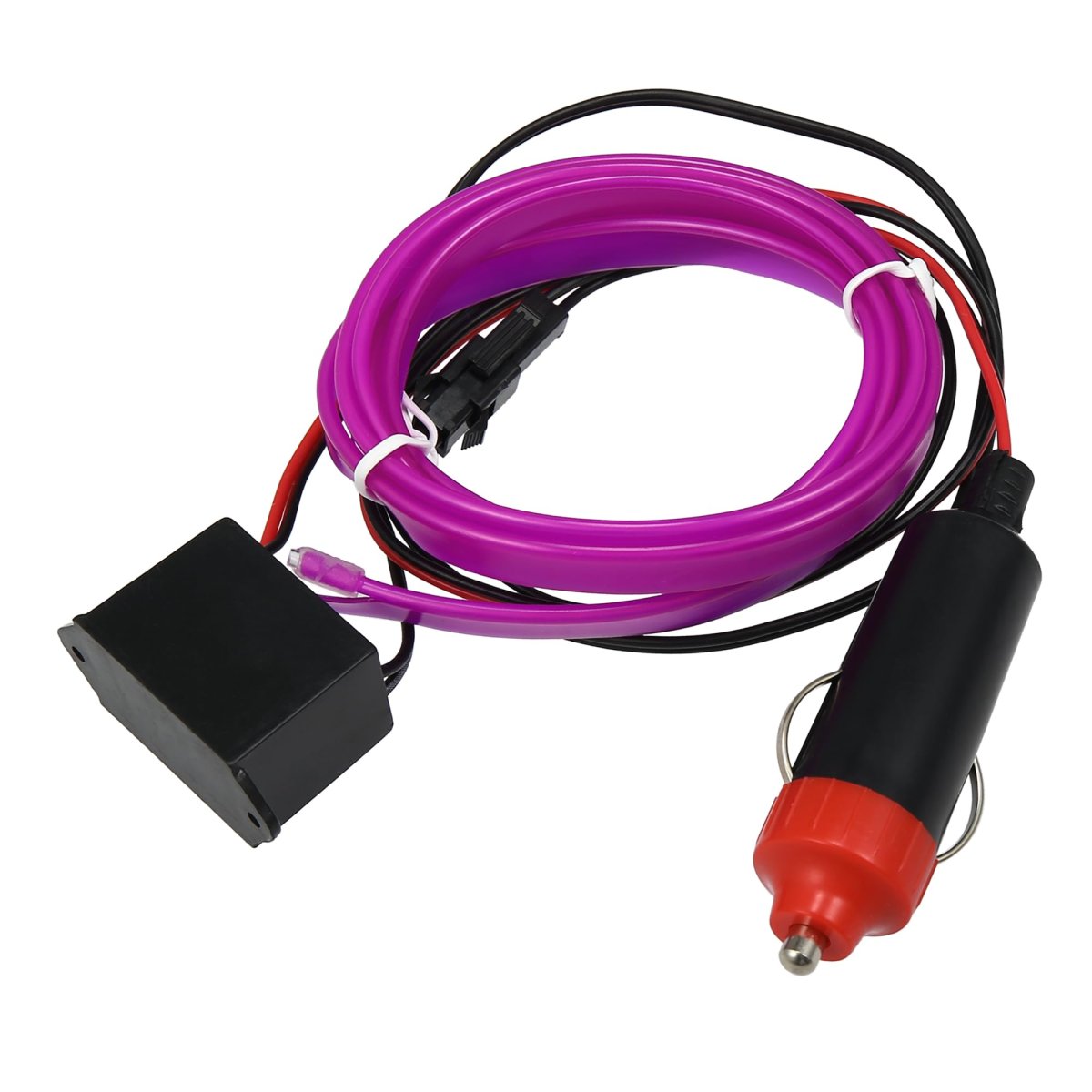 - 1 Meter 3ft Neon El Wire String Strip Purple Cold Light Glow With Cigarette Lighter For Car Interior Decoration