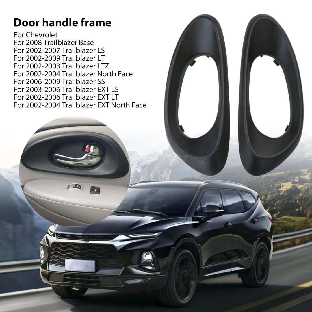 Fitment - Fits for 02-09 Chevy Trailblazer Set Front Inside Door Handle Textured Trim Bezel. Replaces Part Number - 15214507, 15214506, 15214502, 15214501, for GM1558102, for GM1559102 interior door handle bezel. stable material & Easy install - Made of ABS materials, it's more resistant to cold and heat, ensures structural integrity for longer use. Direct Replacement for the Interior Door handle, easy to install and save your value time. Package Include - 2Pcs Front/Rear Left Driver & Right Passenger Side Trim Bezel Door Handle..Other fine products