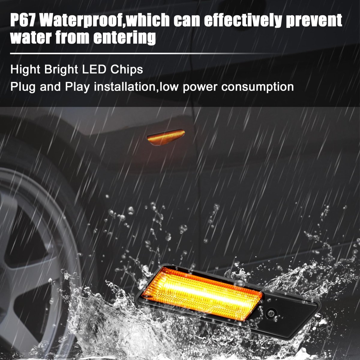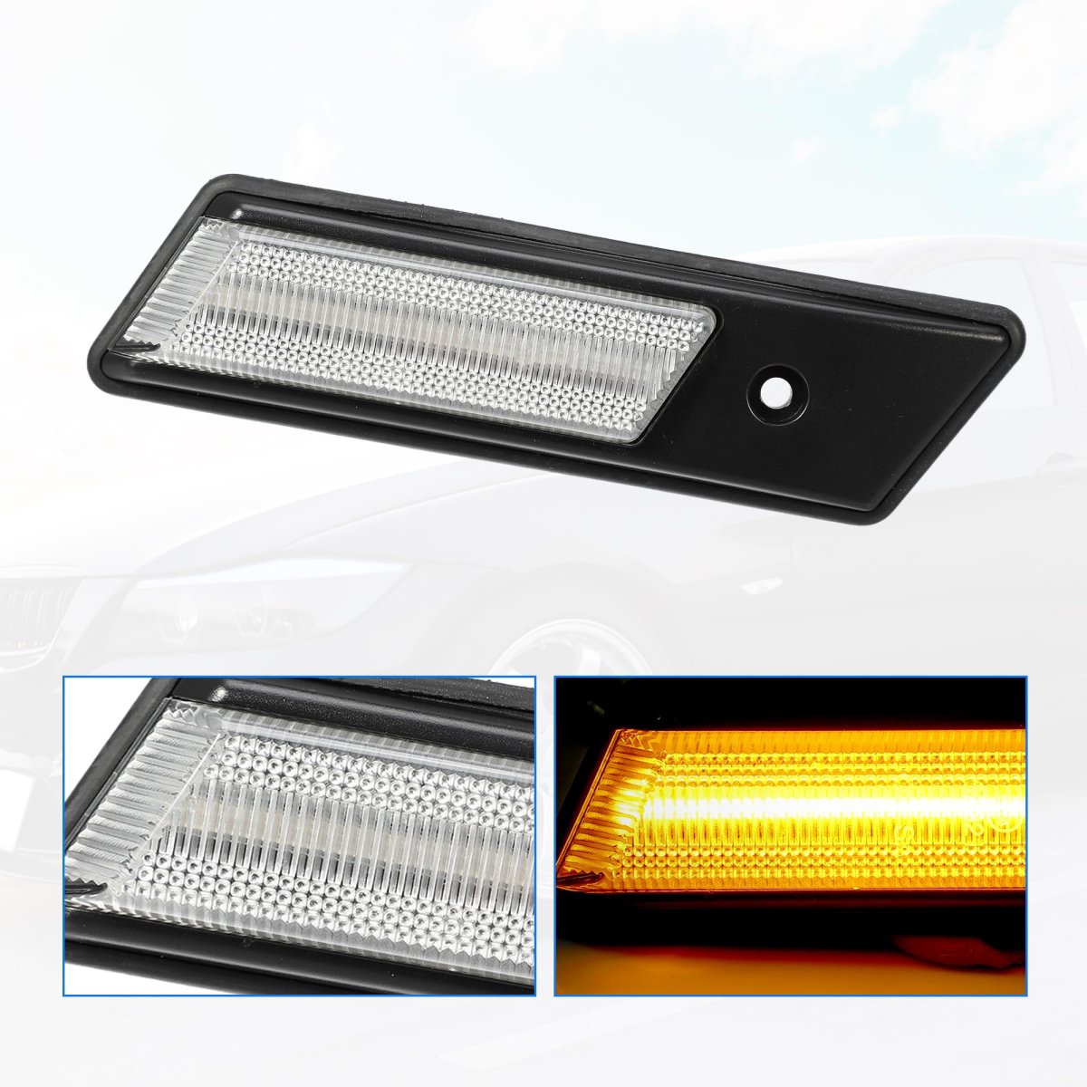 Fitment:for BMW E36 1992-1996. OE Number:63138357047/63138357048. Premium Material: The LED side marker lamps are made of quality ABS plastic,which is sealed, durable, not faded, anti-scratch, and for long-term use. It is also water-resistant, so it will not get wet even after heavy rain or car wash.. Feature:The side marker lights flow continuously when the lights are illuminated.Easy to see your car at night, and improves the car's visibility and safety when driving at night.. Easy Installation: Plug and play, no cutting or drilling required, direct-fit replace the original side turn signals light, just simply remove the original housing and connect the new light plug to the socket. Light up without delay, and the original car function is not changed..Other fine products