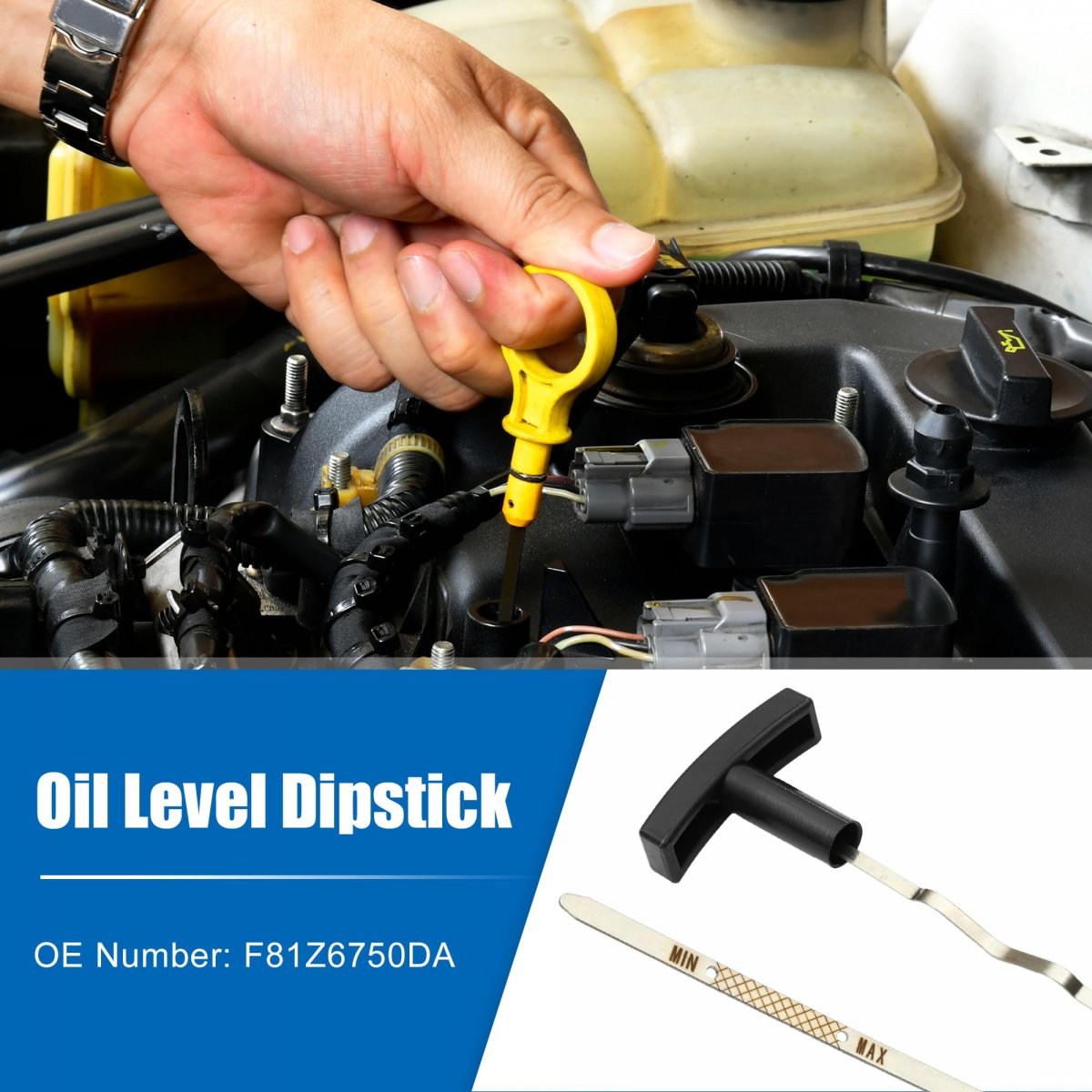 OE Number:F81Z6750DA. Fitment: for Ford E-350 Club Wagon Chateau, XL, XLT 7.3L V8 - Diesel 2003, for Ford E-350 Econoline Base, XL 7.3L V8 - Diesel 1995-1998, for Ford E-350 Econoline Club Wagon Chateau, XL, XLT 7.3L V8 - Diesel 2001, 2002, for Ford E-350 Econoline Club Wagon Chateau, Custom, XLT 7.3L V8 - Diesel 1999, 2000, for Ford E-350 Econoline Club Wagon Chateau, Custom, XL HD, XLT, XLT HD 7.3L V8 - Diesel 1997, 1998. Function: An engine oil dipstick serves as a gauge to check both the level of oil in your vehicle.. How to Use: 1. Turn off the ignition and wait for the engine to cool down; 2. Pull the dipstick out. Make sure that the cloth is kept below it so that the oil does not fall on your vehicles engine or yourself; 3. Wipe the dipstick gently using a paper towel or tissue paper or any clean cloth; 4. Insert the dipstick back into the tube from where you had pulled it out; 5. Pull the dipstick out again as you did previously and inspect it for the oil level..Other fine products