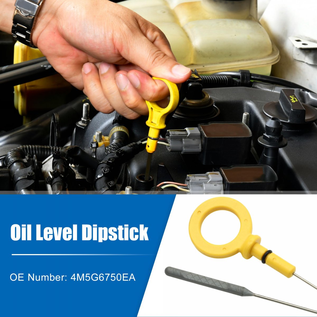 OE Number:4M5G6750EA. Fitment: for Ford F-250 Super Duty King Ranch, Lariat, XL, XLT 6.0L V8 - Diesel 2006, 2007, for Ford F-350 Super Duty King Ranch, Lariat, XL, XLT 6.0L V8 - Diesel 2006, 2007. Function: An engine oil dipstick serves as a gauge to check both the level of oil in your vehicle.. How to Use: 1. Turn off the ignition and wait for the engine to cool down; 2. Pull the dipstick out. Make sure that the cloth is kept below it so that the oil does not fall on your vehicles engine or yourself; 3. Wipe the dipstick gently using a paper towel or tissue paper or any clean cloth; 4. Insert the dipstick back into the tube from where you had pulled it out; 5. Pull the dipstick out again as you did previously and inspect it for the oil level..Other fine products