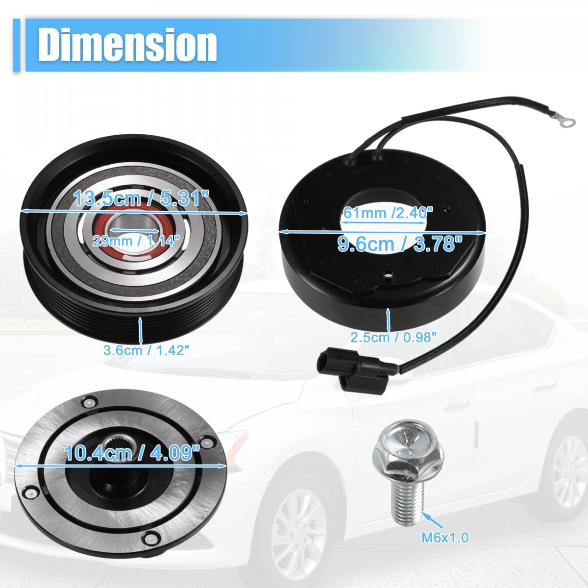 Fitment: for Honda Accord 2013-2017 2.4L.. Function: Air conditioning compressor clutch can solve the clutch stop rotating, not meshing noise, leakage, engine overload and other problems.. Feature: Made of durable material, strong and durable, good compatibility, fast cooling, good heat dissipation, energy saving and low load, long service life.. Note: Before replacing the clutch of the air conditioner compressor, ensure that the compressor pipe is clean and smooth.. Package Includes: 1 Set x AC Compressor Clutch Kit.Other fine products