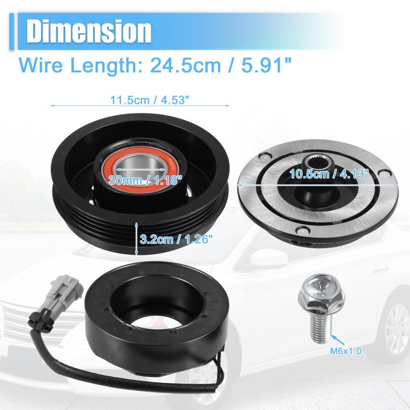 Fitment: for Chevrolet Tahoe 5.3L 2000-2014. Function: Air conditioning compressor clutch can solve the clutch stop rotating, not meshing noise, leakage, engine overload and other problems.. Feature: Made of durable material, strong and durable, good compatibility, fast cooling, good heat dissipation, energy saving and low load, long service life.. Note: Before replacing the clutch of the air conditioner compressor, ensure that the compressor pipe is clean and smooth.. Package Includes: 1 Set AC Compressor Clutch Kit Pulley Coil.Other fine products