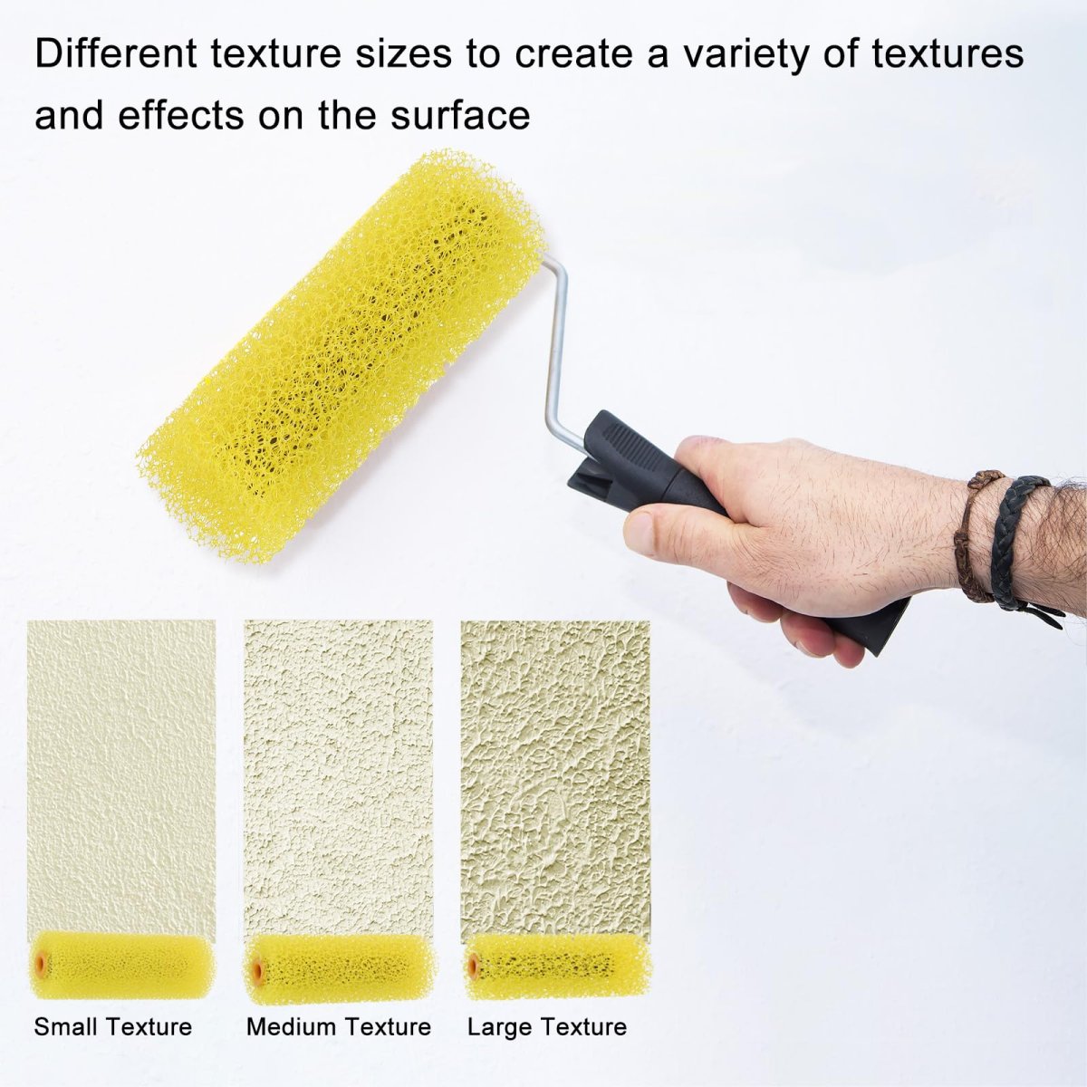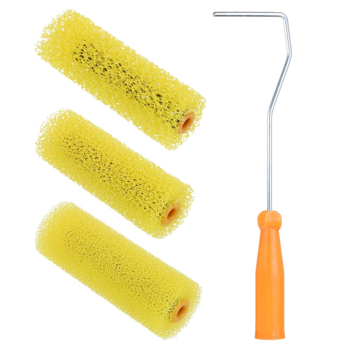 - 1 Set Textured Paint Roller Covers 4 Inch Mini Resilient Sponge Cover With Frames Textures Foam Drywall Textures Reusable