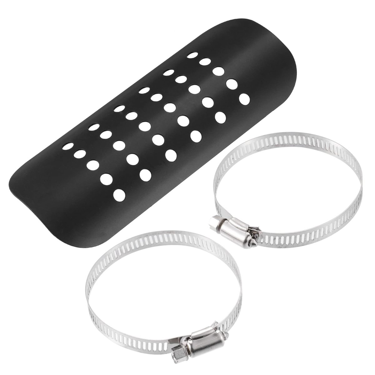 Features exhaust muffler heat shield and 2 adjustable mounting clips for easy installation and direct replacement without modification.. Made of temperature resistant materials, it does not rust or deform, which can prevent the surface of the exhaust pipe from being worn. With good thermal insulation, the protector ensures smooth operation of the exhaust system.. The muffler heat shield is anodized, is perfect for trim. At the same time, it saves energy, and the flame exhaust pipe heat shield plays a good role in safety protection and can be exhausted.. The muffler heat shield is anodized, is perfect for trim. At the same time, it saves energy, and the flame exhaust pipe heat shield plays a good role in safety protection and can be exhausted..Other fine products