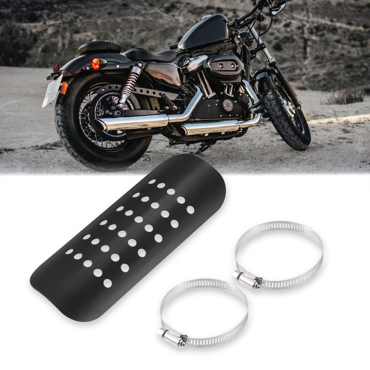 - 1 Set Universal Motorcycle Exhaust Heat Shield Pipe Guard Muffler Protector Black