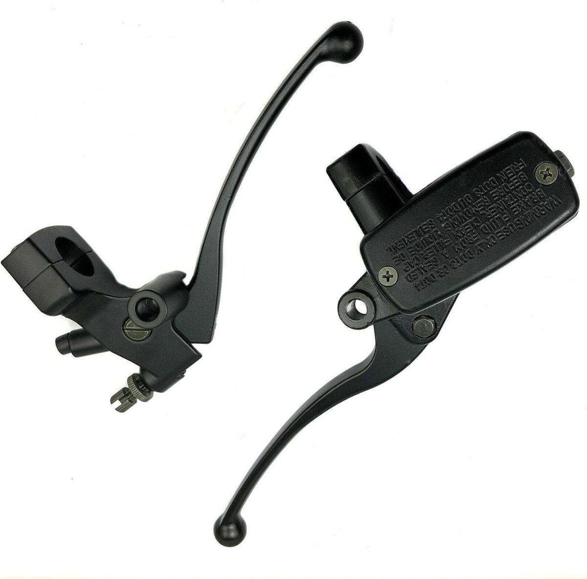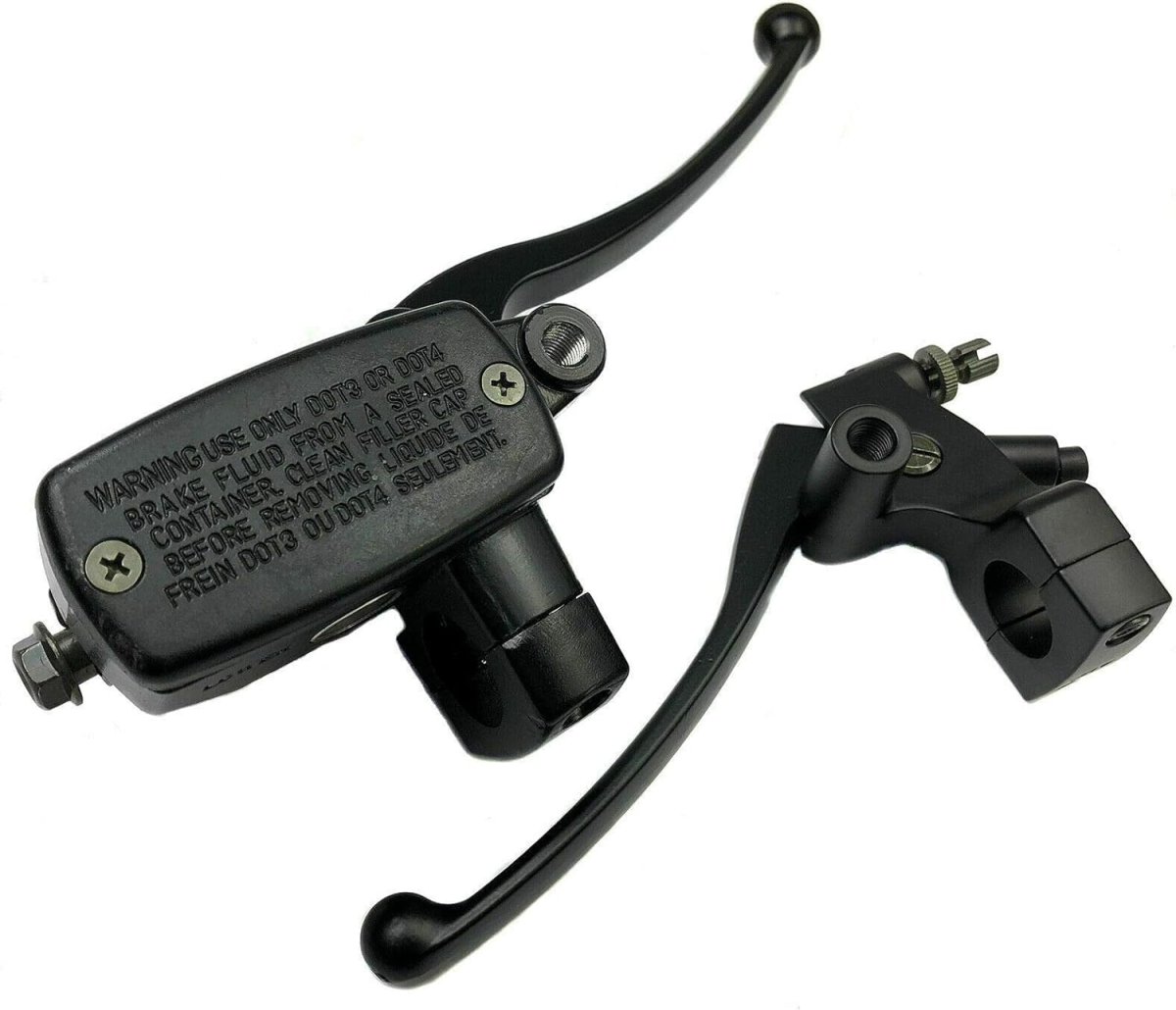 Fitment: Universal fit for most motorcycles with 1 inch (25mm) brake handlebars. Fits most motorcycles / bikes with 1 inch (25mm) brake handlebars like for Hon-da Ya-ma-ha Su-zu-ki. Mirror thread: 10mm / 0.39", Bore size: 14mm / 0.55", Banjo Bolt Size: 10mm / 0.39". Quality Assured: Good quality replacement part,all parts are tested and quality controlled prior to shipment. Package Include: 1 X Left Clutch Lever 1 XRightHydraulic Brake Master Cylinder.Other fine products