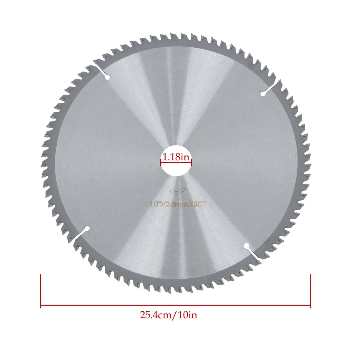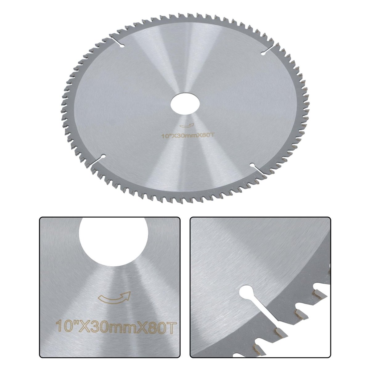 Package: Includes 1pcs 10 Inch 80T woodworking saw blade. Product Size: Diameter: 10inch, Arbor size: 30mm, Carbide Teeth: 80. Application: Fit for cross-cutting softwood, hardwood, plywood, chipboard, multi-board, panels, MDF, plated counted-plated panels, laminated Bi-laminate plastic, and FRP. Specificities: Precision-ground teeth allow for smooth, accurate cuts,thin saw blade design reduce material consume or waste. Material: Made from 50 steel with hardened carbide teeth (TCT), this saw blade maintains sharpness and provides strong cutting performance.Other fine products