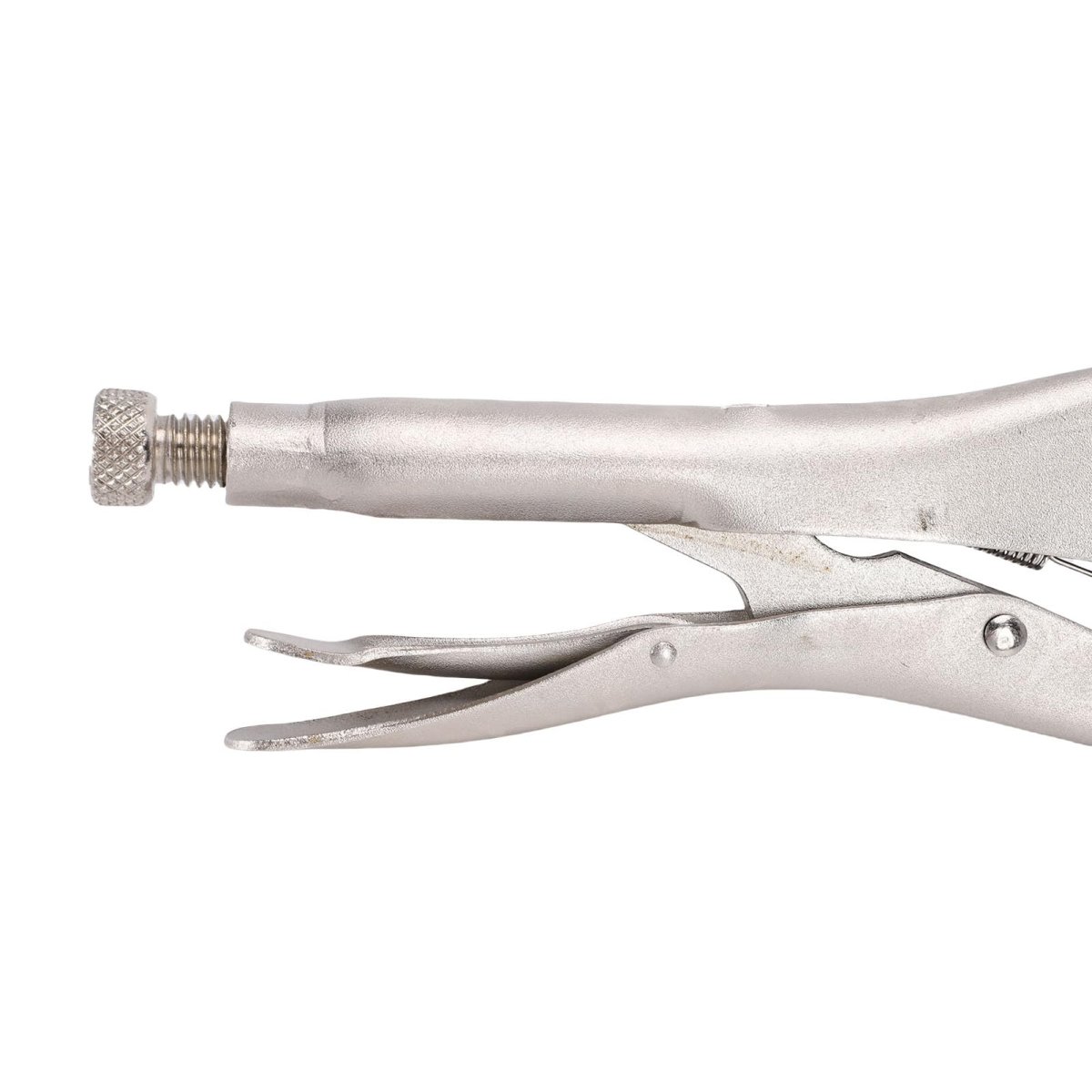 [Quick Unlocking] Classic trigger release design enables easy and fast unlocking. the punch steel plate handle provides durability under high tension.. [Wide Application] for automotive repair and precision machining, offering reliability and durability for any project.. [Durable Construction] Made from high carbon steel with ni plated heat-treated steel for enhanced strength and longevity.. [Maximum Locking Power] The adjustable screw locking mechanism ensures strong clamping force for various tasks. the flat pointed tips securely grip metal sheets without bending.. [Versatile Tool] 10-Inch locking plier ideal for bending, shaping, and crimping metal sheets, making tasks easier to accomplish..Other fine products