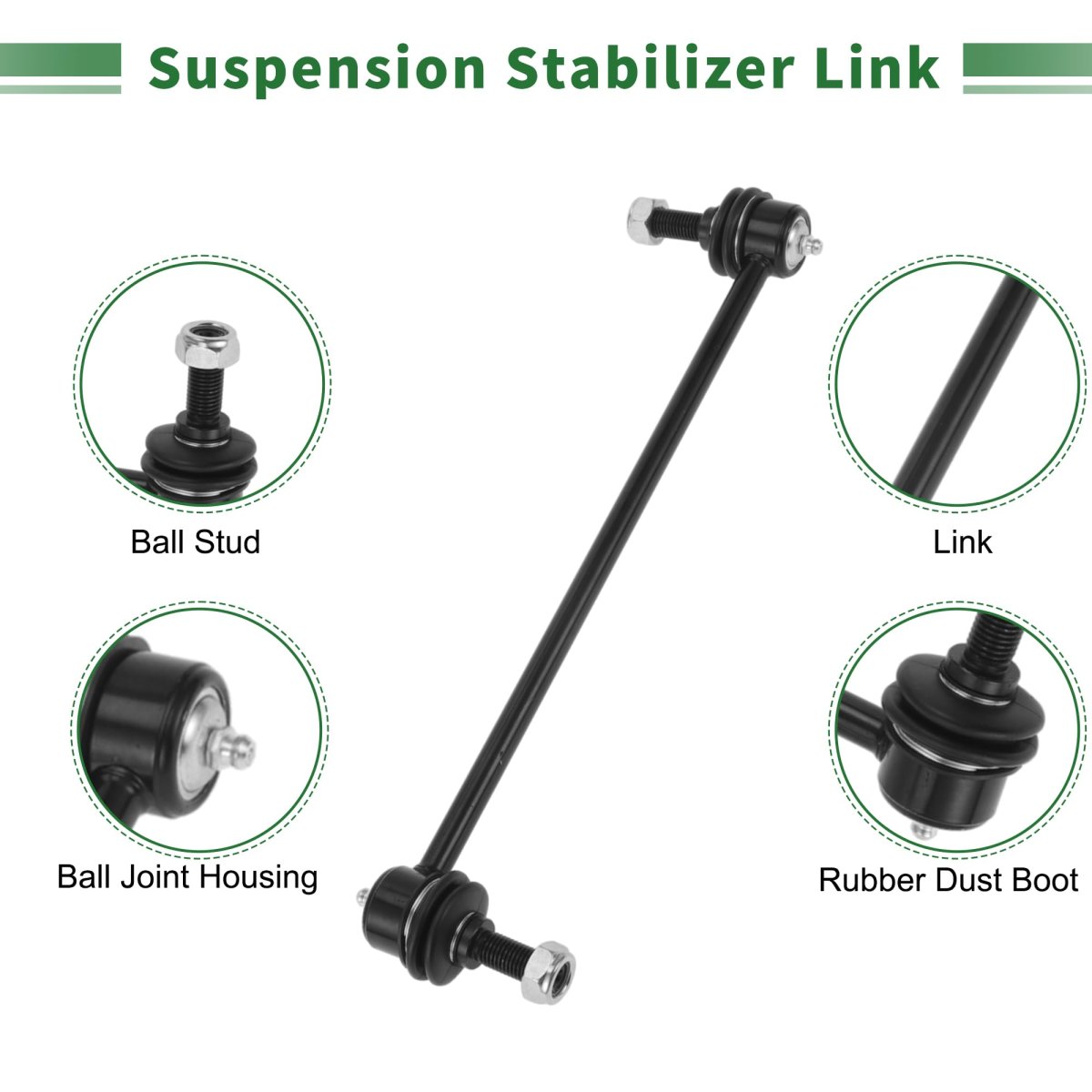FITMENT: for Dodge Caravan 2001-2007, for Dodge Grand Caravan 2001-2007, for Chrysler Town & Country 2001-2007, for Chrysler Voyager 2001-2003. OE Number:K7258/K7399/ES3537/EV405; [PACKAGE INCLUDES]:2 x Front Stabilizer Sway Bar Link, 2 x Front Outer Tie Rod End Link, 2 x Front Inner Tie Rod End Link, 2 x Front Lower Ball Joint, 2 x Tie Rod Boots. FUNCTION: This suspension kit can fix the clunking noise when going over small bumps, and uneven tire wear, prevent excessive leaning during turns, improve the car's stability, and provide smooth operation when driving.. WHEN TO REPLACE: Signs your suspension system needs replacement include clunking noises during turns and bumps, loose or misaligned steering wheel, poor handling, uneven tire wear, and visible damage in the suspension system.. MATERIAL: Made of durable material and solid strength structure, which is wear-resistant and corrosion-resistant, making it more stable during operation. No manual included, professional installation recommended..Other fine products