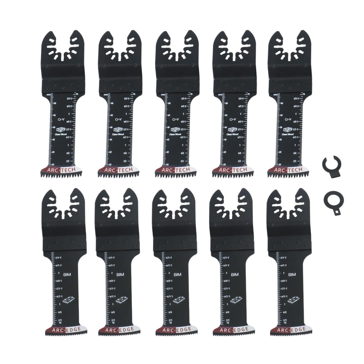 Complete Set: 10-Piece universal oscillating multitool blade set, featuring 2 most commonly used sizes (1-1/4'' Japanese Teeth Saw Blades, 1-1/4'' Arc-edge Saw Blades). Premium Materials: The vibrating multi-purpose blade is crafted from excellent steel. Compared to standard blades, it offers significantly enhanced hardness and heat resistance, enabling effortless and swift cutting while extending service life.. Wide Compatibility: Featuring a universal interface system, these blades enable tool-free quick replacement and work with most major oscillating tool brands. Versatile Applications: These blades are specifically designed for woodworking and metal cutting, delivering outstanding performance in home renovation, plumbing, metal/wood fabrication, emergency rescue operations, and other applications..Other fine products