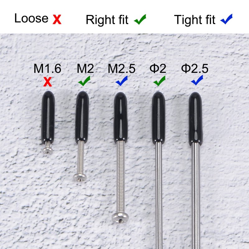 2mm INNER DIA Round end cap cover fits 2mm dia round tube or screw or pipe. GOOD PROTECTOROur flexible end caps prevent scuffs on kitchen or wood floor,for metal chair tips, furniture, chair feet, table legs or tips, screw thread, nail heads, or to cover any round tubing. FLEXIBLE VINYL MATERIAL Thread protector cover is made of vinyl rubber material, flexible and insulated. SIZE SELECTIONBecause rubber material is soft and elastic, we recommend choosing rubber end cap that is slightly smaller than the outer diameter of the product to be protected. For example: the outer diameter of your product is 9.8mm dia, choose the rubber cover of 9.5mm!. WIDELY APPLICATION Perfect for covering screws or other threaded parts, round tubing, furniture feet and so on.Other fine products
