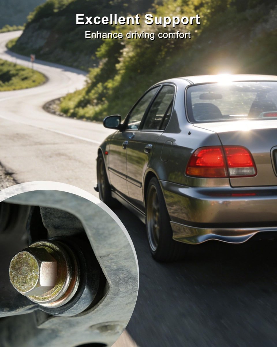 Stable Connection: Front subframe crossmember bolts is made of high-strength carbon steel, firmly fixing the subframe to the chassis, effectively reducing subframe displacement during vehicle operation, and enhancing vehicle stability. Excellent Rigid Support: Front subframe crossmember bolts provide excellent rigid support, reduce chassis deformation, and maintain precise handling regardless of high-speed driving or turning, improving driving comfort for you. Durable and Rust Proof: Bolts is coated with color on the surface and has excellent rust and wear resistance, even in humid environments for a long time, it maintains stable performance, has a long service life, and is not easily aged. Compatible Models: Fit for Honda Civic EG 1992-1995, Fit for Acura Integra K Swap 1994-2001, Not fit for EK Honda Civic 1996-2000 subframe, Only fit for EG Honda Civic 1992-1995 or fit for DC Acura Integra 1994-2000 Front Subframe. Easy Installation: Front subframe crossmember bolts has a simple and fast installation process, without the need for complex tools, bolts can be installed by individuals at home, saving time and effort.