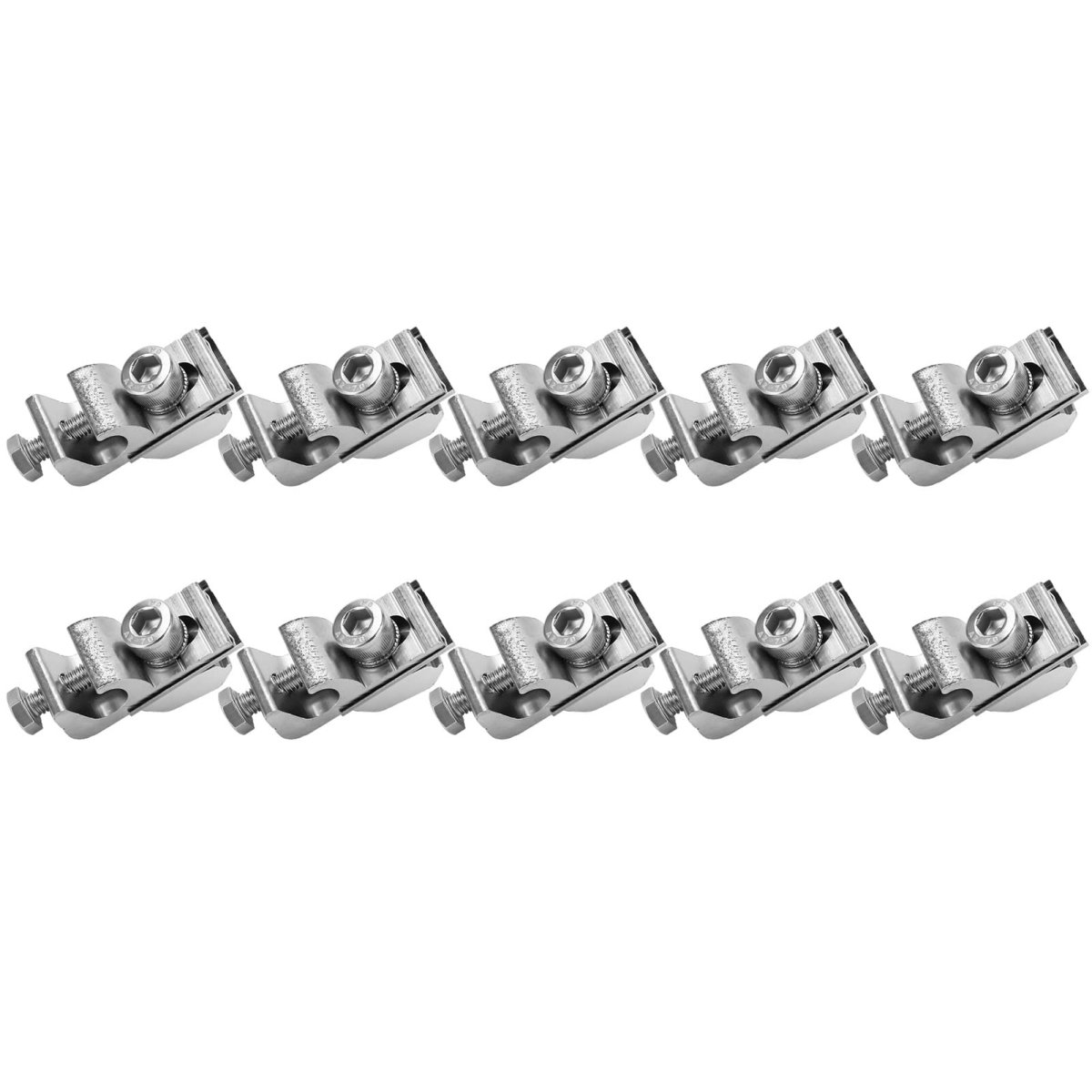 [DURABLE ALUMINUM ALLOY] - Crafted from premium aluminum alloy, this ground clamp offers high mechanical strength and long-lasting performance.. [WIDE VERSATILITY] - Compatible with photovoltaic aluminum rails, pressure blocks, and middle brackets.. [EFFICIENT PROTECTION] - Collects static electricity and channels it to the ground, preventing damage to PV modules and brackets.. [QUICK & EASY INSTALLATION] - The lightweight design and straightforward installation process make this ground clamp convenient to use.. [10PCS INCLUDED] - This set includes 10 solar panel ground clamps, providing ample supply for various projects..Other fine products