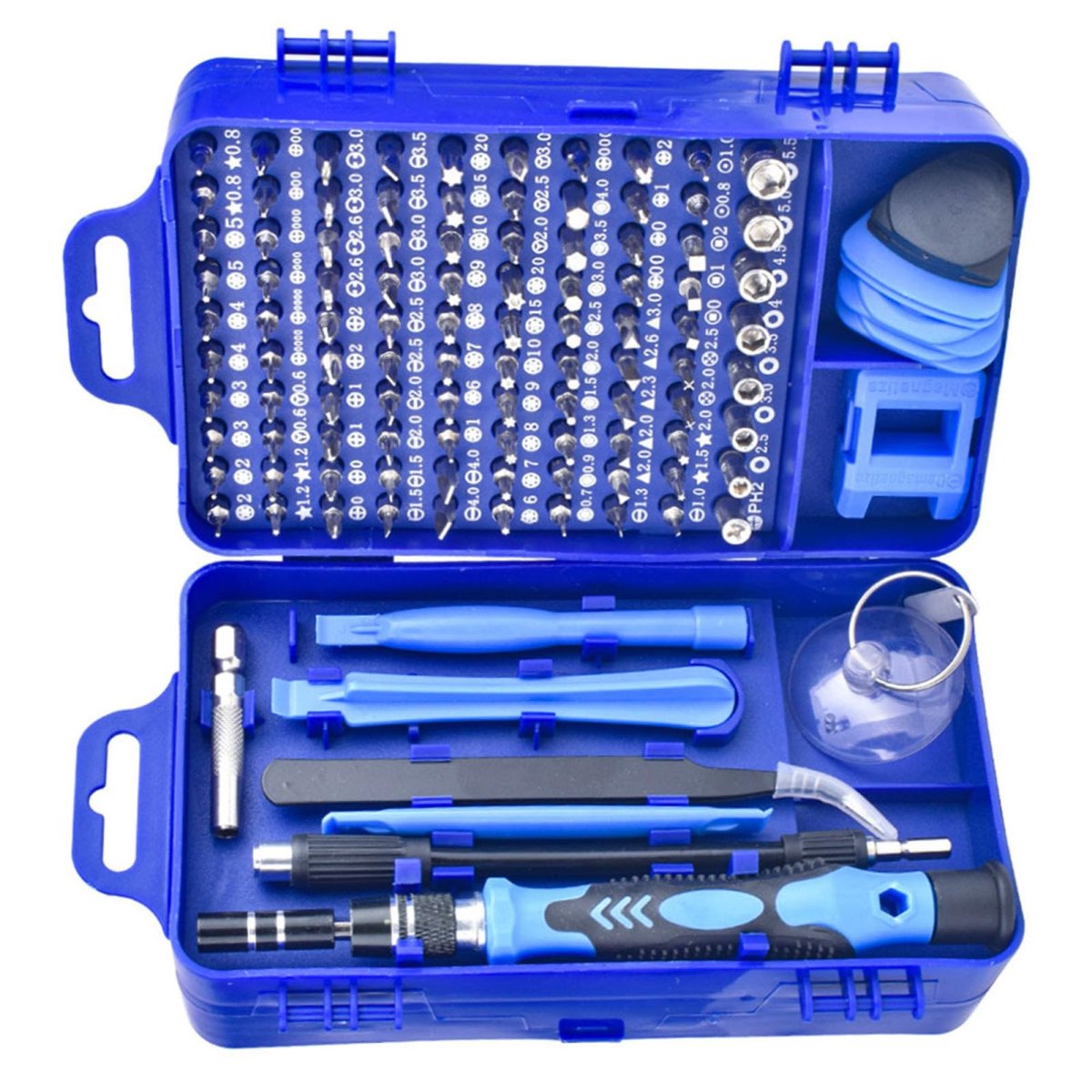 Multi-use Screwdriver: This 115 in 1 repair screwdriver kit is versatile and ideally suited to a range of applications. From repairing computers, phones, laptops, tablets, cameras, toys, and more, this toolset ensures that you'll never be without the right tool.. 115 comprehensive pieces: This screwdriver set contains multiples pieces with different specifications. A corresponding reference table is included, ensuring you always have the right tool for the job.. Superior Alloy Steel Tools: Constructed from chrome alloy steel, this screwdriver set offers unparalleled strength and durability. Unlike other tools that may warp or deform over time, these screwdrivers are designed to last and provide consistent performance.. User-friendly design: Equipped with a comfortable, ergonomically designed handle, this repair screwdriver set ensures that long hours of work will not tire your hands. You can confidently use this kit without worrying about hand fatigue.. Portable and Convenient: Bundled in a compact, organized storage box, this screwdriver set is not only easy to carry around but also quick to access. Whether for professional jobs or DIY tasks at home, having these essential tools at your fingertips makes any repair job much easier..Other fine products