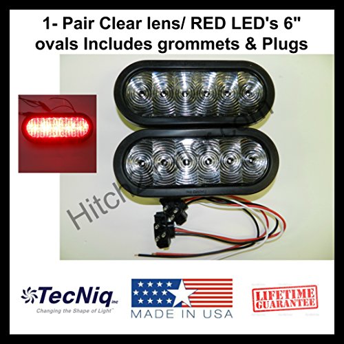 - Tecniq Inc Pair Of 6 Oval Clear Lens Red Led Stop Turn Tail Light Grommet Trailer Truck