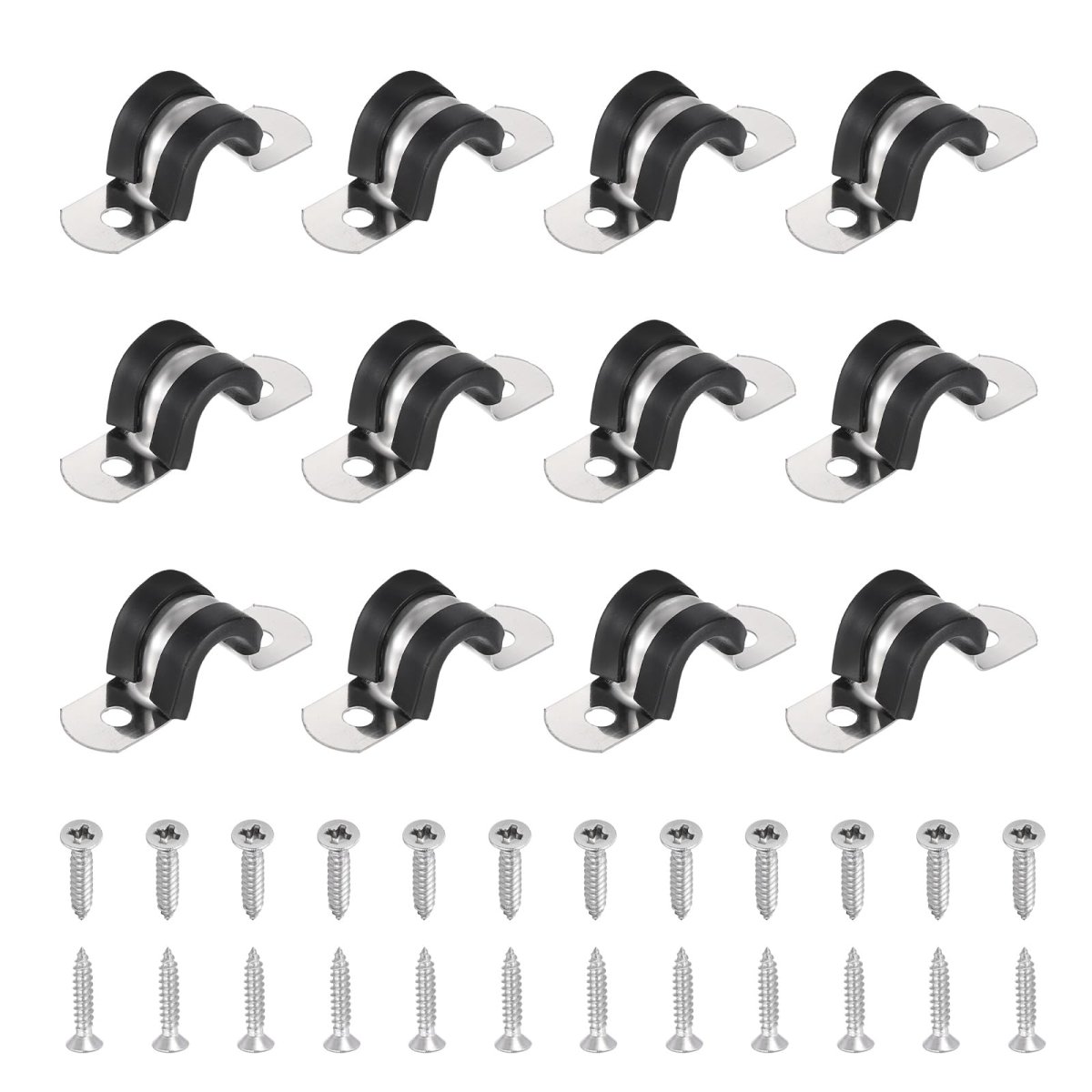 - 12pcs 10mm 3 8 Cable Clamp 304 Stainless Steel Rubber Coated Cushion Insulated Clamps U Holder Pipe Strap With M3x16mm Screws