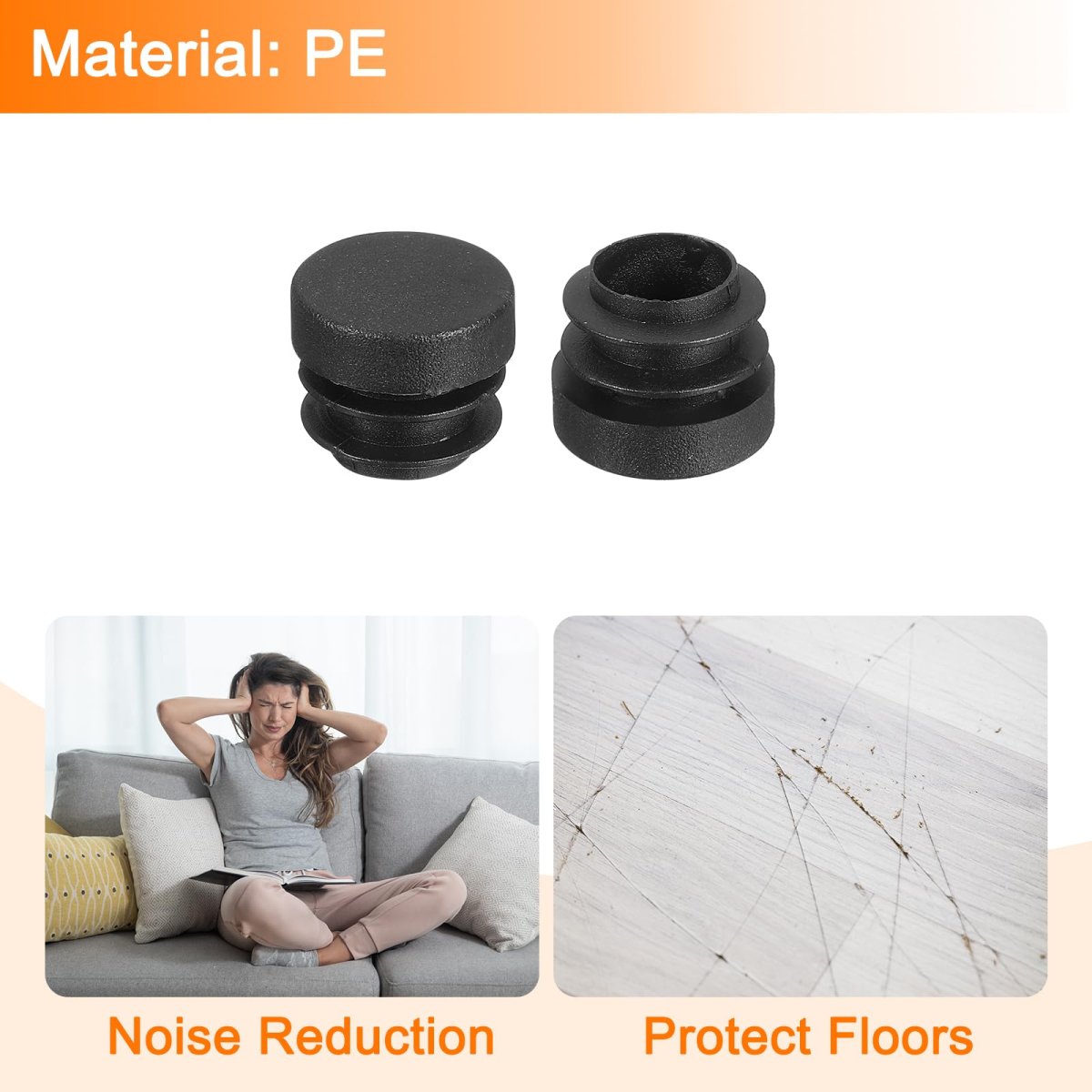 Material: The chair leg end cap is made of PE material, which is soft, non-slip, and not easy to tear. Corrosion-resistant and durable.. Anti-Scratch & Noise Reduction: Say goodbye to annoying scratching sounds when moving furniture. The cap pipe tube inserts eliminate noise, provide gentle cushioning for furniture feet, keep floors free from damage and scratches, and prevent dust from entering the tube ends.. Easy to Use: Just align with the tube hole and knock the end cap into place, the plastic ribs have multiple flexible ribs for a secure fit.. Application: Plastic plug end caps are suitable for surface treatment of metal tubes and tube ends, such as tubular shelves, pole caps, fence/fence railing posts, etc. It can also be used for fitness equipment, table legs, chair legs, bookcases, trailer frame ends, furniture sliding covers, etc., to help protect floor surfaces..Other fine products