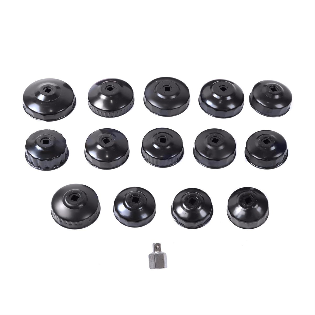 Application: Compatible with 3/8 inch and 1/2 inch square drive wrenches. Function: It is used for disassembling and assembling the oil filter cover when replacing the old oil filter. Material: Made of sturdy alloy steel, it features high reliability, is not prone to deformation and has a long service life. Package includes: 14 x Oil Filter Socket; 1 x 1/2 inch to 3/8 inch adapter. Portable: Equipped with a storage box, which organizes the parts and makes it easy to carry, store and maintain.Other fine products