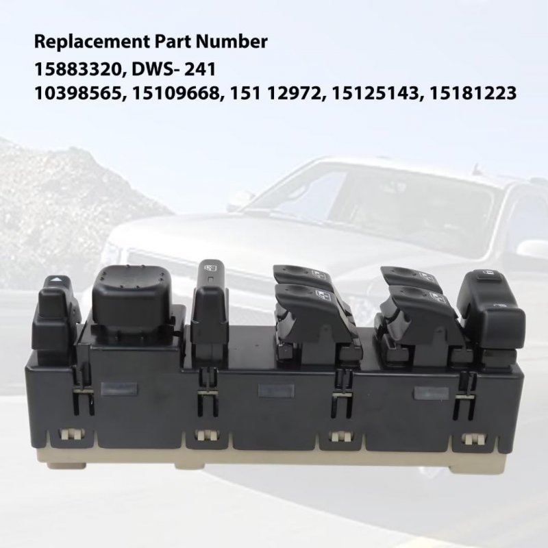 Replace Part Number: 15883320, DWS-241, 10398565, 15109668, 15112972, 15125143, 15181223. Replacement for 2003-2007 Chevy Avalanche, Silverado, Suburban, Tahoe. GMC Sierra, Yukon & Cadillac Escalade ESV, EXT.. The power window switch driver side is made of high quatily material, reliability, durability and excellent performance.. Just remove your original master power window control switch and install it with harness connections..Other fine products