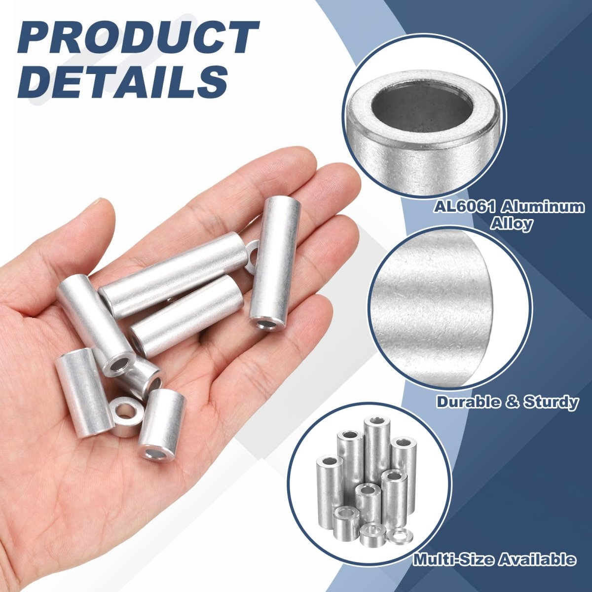 [Size]: The type of aluminum spacer is straight, the color is silver, the inner diameter is 7.94 mm / 5/16 Inch (Tolerance: +0.2/-0mm), the outer diameter is 12.7 mm / 1/2 Inch(Tolerance: -0.2/+0mm), and the length is 25.4 mm / 1 inch (Tolerance: -0.15/+0.15mm). The package contains 15pcs aluminum spacers. [Material]: Made from AL6061 aluminum alloy, our spacers have good thermal conductivity to effectively dissipate heat from electronic components and also offer excellent strength and corrosion resistance to ensure durability and long-lasting performance. [Feature]: The aluminum spacers are designed for precise spacing and thermal management, making them suitable for various applications. Their robust construction allows them to withstand demanding conditions, ensuring reliable performance. [Easy to Install]: These spacers are easily installed using screws or bolts, select the size that fits your application, align it with the desired screw or component, and finally insert it. [Application]: Aluminum spacers are widely used for applications such as electronics, automotive, construction, and industrial machinery to provide precise spacing and thermal management.Other fine products