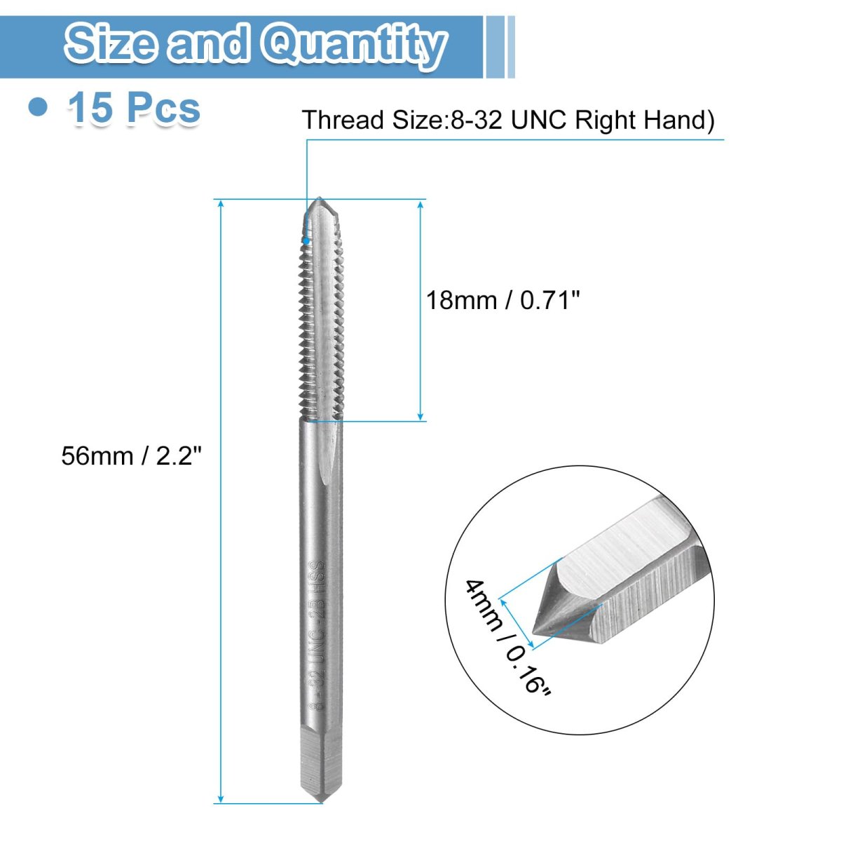 - 15pcs Straight Flute Thread Tap 8-32 Unc Screwing Tapping Tool Thread Milling Machine Taps High-speed Steel 6542 Hss