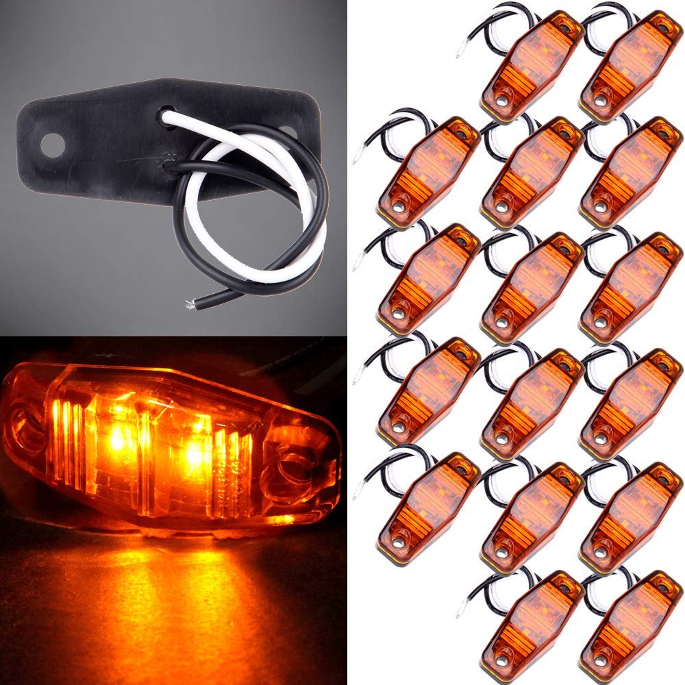 Universal: Generally people use them as clearance, side marker lights,identification light,trailer lights,rear tail light , license light , Parking light,also use them for trailer lights 2 for brake lights and two for tail light on each side. Also some put them on motorhome as position lights. Features: Every kit features strong ABS plastic lens which will keep the original color under prolonged exposure to sunlight. Ultra bright LED light and durable LED light. Energy-Saving and low temperature, shockproof waterproof.. Brightness :The added brightness from the LEDs in the lights is sure to get the attention of drivers behind you fast,provide better visibility during night time, dense fog, heavy rain, and snow. Easy Installation: Surface Mount with two free end wires: Black is hot and White is ground; the wires come out of the back of the light; Two-wire design includes both lead wire and ground wire for mounting to all surfaces. Package includes:16Pieces 2 inch Amber 9 LED Side Marker Turn Signal Light.Other fine products