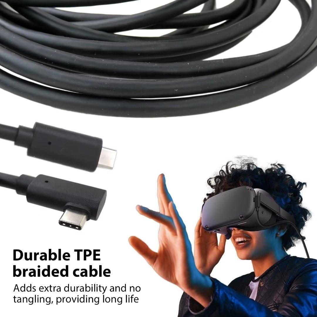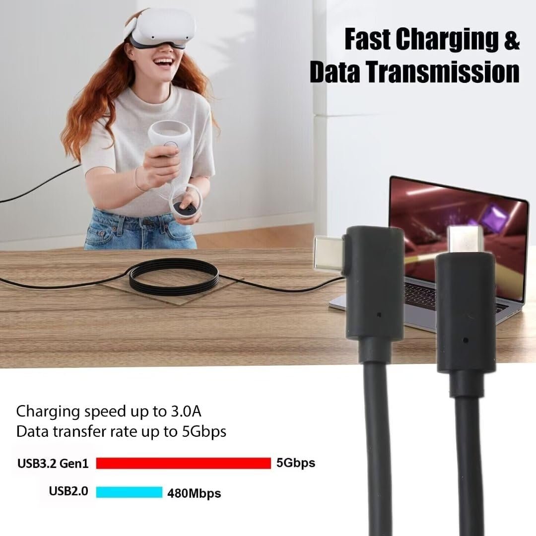 90-Degree USB-C Connector Design: Perfectly match the for Oculus Quest 1 and for Oculus Quest 2 VR headsets, which does not stick out and provides you a comfortable grip.. Compatible for Oculus Quest 2/1 Link Cable; for Type-C Port Smartphones; for Type-C Laptops.. High Speed Charging and Data Transfer - Our USB 3.0/3.1 Gen 1/USB 3.2 Gen 1 Type C to C cable for VR Quest 2/1 Link work Perfectly for fast data sync at 5 Gbps and quick charge at 3A current, designed to improve the transfer speed and stability. (Actual charging speed depends on your device and wall charger).. TPE Braided Cable: Add additional durability and tangle-free, provide long lifespan, and there is Extend Long Distance, 16FT Link Cable is long enough that allows you to move freely without restricted..Other fine products