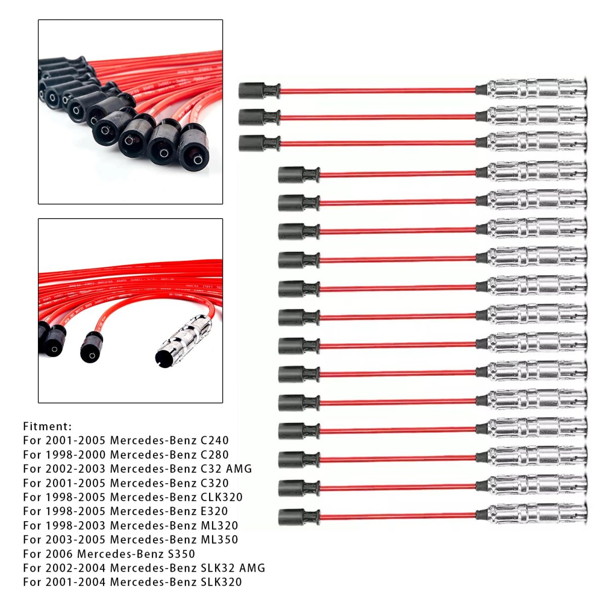 - 16x Spark Plug Ignition Wire Set 1121500218 For Benz C240 C320 2001-05 C280 1998-00 C32 Amg 02-03 Clk320 E320 Ml320 1998-05