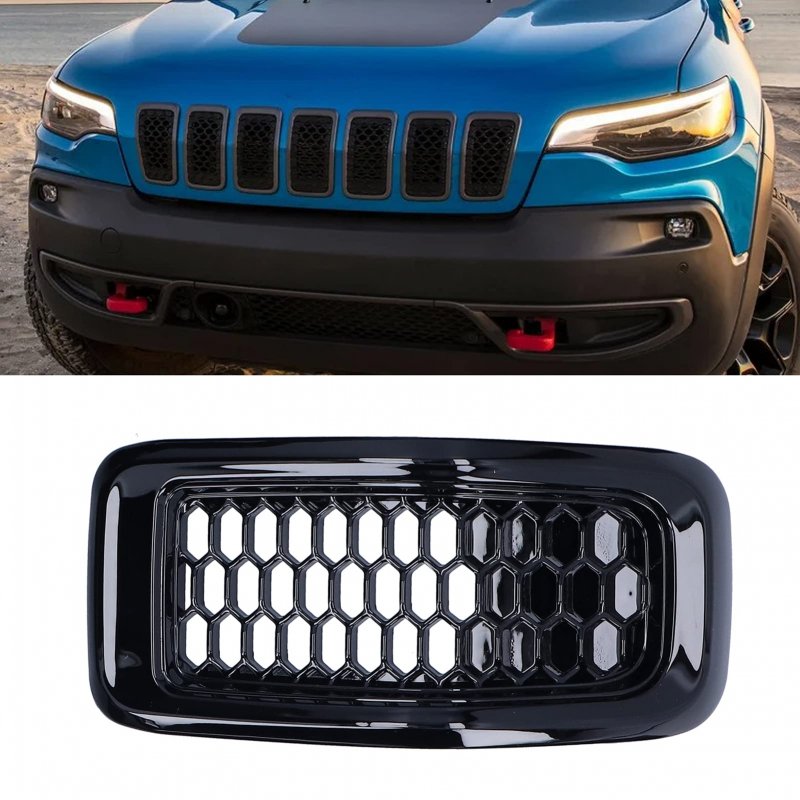 Compatibility: Front Grill Mesh Inserts Trim is designed for Jeep Cherokee 2014-2018, (not fits for Jeep Cherokee 2019 and not for Jeep Grand Cherokee), this is a great replacement, designed for the original car.. Replacement: The package includes 7 front grilles, to ensure a perfect match with your car. Provide better airflow to the radiator to help better cooling process.. Good protection: The front grill is installed on the front of your car, which can protect the bumper during driving and avoid the damage caused by debris and gravel; professionally manufactured, can directly replace the damaged or worn one .. Premium Quality: These 7 grills are made of ABS plastic, making the fog lamp covers heat resistant, strong, not easy to break, and last longer..Other fine products