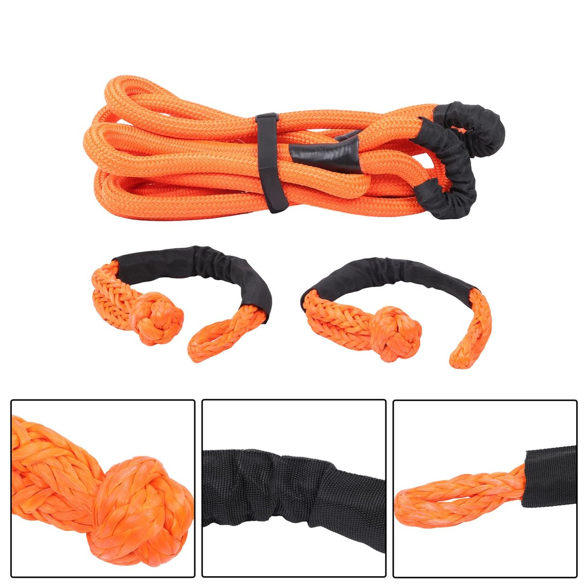 Weaving Craft: The double-layer tight weave boasts high density, resulting in a firm and non-loose rope body. When under tension, the stress is evenly distributed, avoiding breakage caused by local overload.. Breaking Strength: With a rated breaking strength of 34,000 pounds, it far exceeds the towing requirements of ordinary household SUVs and pickup trucks, and can easily handle recovery operations for heavy-duty vehicles such as trucks and tractors.. Size: With a length of 20 feet, it provides ample towing distance. In off-road recovery scenarios, it can flexibly handle different conditions such as vehicles getting stuck in pits or slipping while slopes, eliminating the need for additional splicing or extension.. Material: Nylon 66 offers excellent elasticity with a 30% stretch rate. It provides a buffer zone during towing and avoids impact damage to the chassis and frame of both vehicles caused by rigid pulling.. Distinctive Style: Compared with the other color, orange delivers a stronger visual impact. It is well-suited for users who pursue a personalized off-road style, making the tow rope a standout accessory for the vehicl..Other fine products
