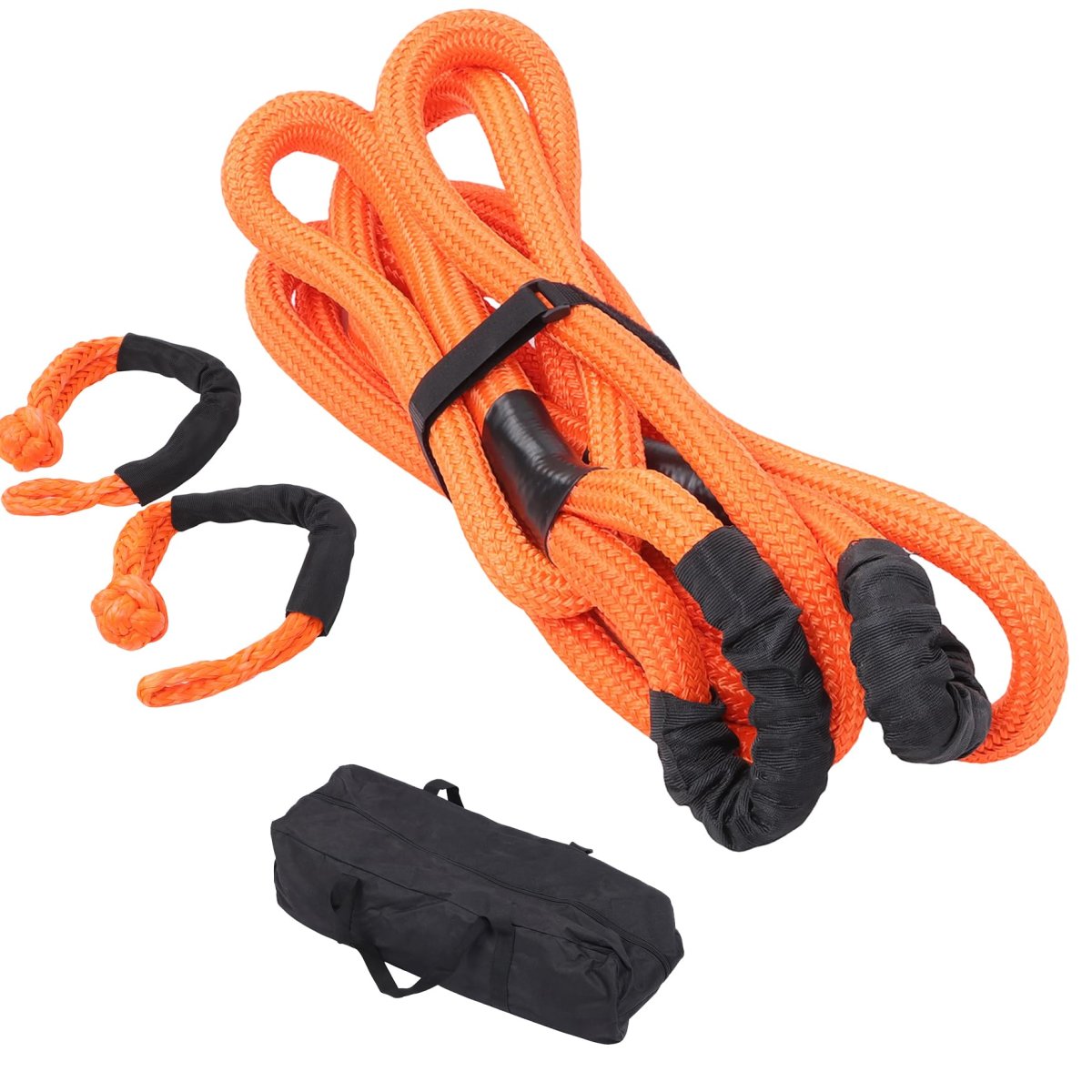 - 1in X 20ft Power Recovery Rope With 2 Soft Shackles Heavy-duty Over 30 Elasticity Nylon N66 Double-layer Weaving 34000 Pounds