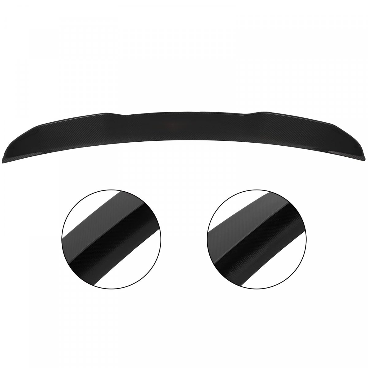 Aerodynamic Design: This rear spoilers will add a sporty and aggressive look to your car while enhancing aerodynamics by lowering overall drag. These rear spoilers come with adjustable brackets to allow full customization to the total down-force on the car dramatically improving vehicle stability in addition to grip and traction.. Superior Performance: The rear trunk spoiler can be extended far enough to pick up some clean air and create limited drag to make the driver feel more comfortable at high speeds.. Excellent Quality: Made of Carbon Fiber material. Tough and durable enough for long-lasting performance. Unpainted Raw Material Black with classic design, in line with popular aesthetic. Coming with super lightweight & great appearance & stylish shape.. Easy to Install: Clean the installation location, it can be mounted on screw or stick with double side adhesive tape. Product may require drilling holes and apply bolts to attach to your bumper.The spoiler wing is designed according to the original vehicle, and it's perfectly fits its body..Other fine products