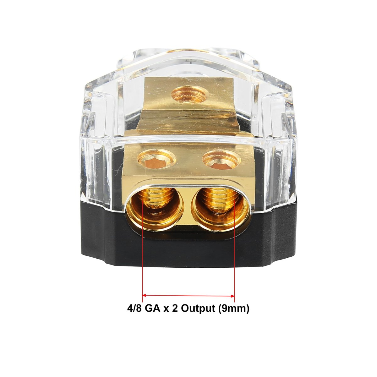 Function: The power distribution block can help reduce the number of wires and AWG-compatible gauges during the installation of a vehicle's media system.. Material: The power distribution block is made of good quality copper and plastic material, which is durable and more conducive.. Electrical Connection: 0/2/4 Gauge Input, 4/8 Gauge Output.. Universal Fit: This power distribution block is a universal fit for cars, trucks, and SUVs.. Package Includes: 1 x Car Power Distribution Block.Other fine products