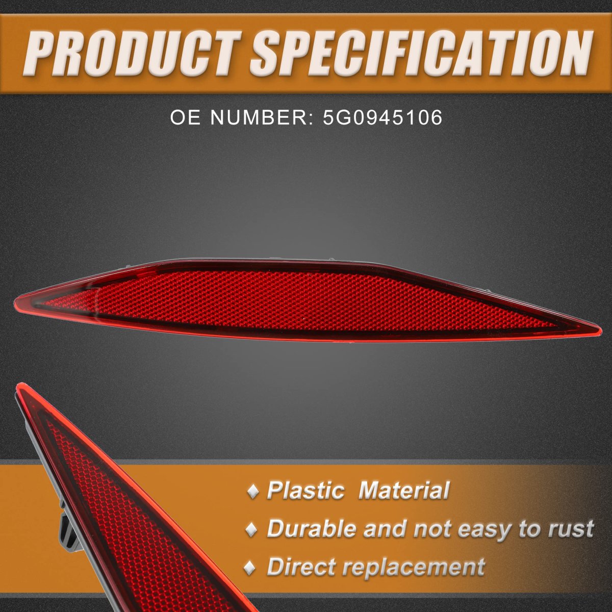 Fitment: for Volkswagen e-Golf -L - cylinder BATTERY EV (EV/BEV) A/T Limited Edition Hatchback 2015, 2017, for Volkswagen e-Golf -L - cylinder BATTERY EV (EV/BEV) A/T SE Hatchback 2016-2019,for Volkswagen e-Golf -L - cylinder BATTERY EV (EV/BEV) A/T SEL Premium Hatchback 2015-2019, for Volkswagen Golf 1.8L A/T Base Hatchback 2016,for Volkswagen Golf 1.8L A/T S Hatchback 2016-2017, for Volkswagen Golf 1.8L A/T SE Hatchback 2016.. OE Number: 5G0945106. Waterproof and Quality Material: Quality plastic lens, anti scratch, no faded with long time exposure and can adapt to all kind of extreme weather, no condensation inside after heavy rain or car wash anymore, and can be used for a long time.. Easy to install: Waterproof and shock resistant. No modification is necessary, plug and play.. Package Includes: 1 Pair x Rear Bumper Reflector.Other fine products