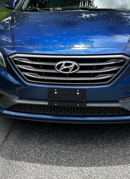 Compatibility: It's designed to fit all Hyundai models with the Flat Shape of the Bumpers. It won't work on Curved Spots of the Bumper or V-shaped Bumpers! You can mount it on the left or right side of the bumper too. This is not an OEM bracket.. Holes: May require new holes in the front bumper! (Use your vehicle's original screws if holes are already present on the bumper.) Screws Included: 2 Screws + 4 Bolts + 2 Zip Ties & 4 Built-In Nuts. You can fit this bracket to your bumper on a plastic zipper too! Zippers are included!. Installation Instructions Easy 2-Step Installation: 1) Attach the mounting bracket to the front Bumper with 2 sharp screws. 2) Choose 4 bolts to attach just the license plate to the mounting bracket.. Placement on Vehicle: Middle, Center, Front Bumper. Design: will fit all standard novelty/license plates issued by all 50 states. Dimensions: 6" x 12" (USA, Canada & Mexico License Plate Standard). Shape of Bracket: Flat. Color: Black.. Custom Fit - The license plate bracket is suitable for all Hyundai vehicle models. Bracket size (6" x 12") fits US, Canada, and Mexico license plates & won't cover license plates or registration stickers. Will Not fit for European license plates!. Highest Quality - The license tag holder is made of premium & heavy-duty plastic, which is rust-proof, anti-wear, & corrosion-resistant. The metal license plate doesn't directly contact the car paint surface, so it won't lead to scratches!. Kit Included - 2 screws, 4 bolts, 2 zip ties & 4 Built-In Nuts for fast & easy installation (It's Very Easy to Install a License Plate on Our Bracket)! This Bracket has 4 mounting holes, one in each corner to secure the plate. May require drilling new holes in the bumper if the existing holes are far apart from each other. All bolts and screws are made under the Phillips screwdriver that every car owner has!.Other fine products