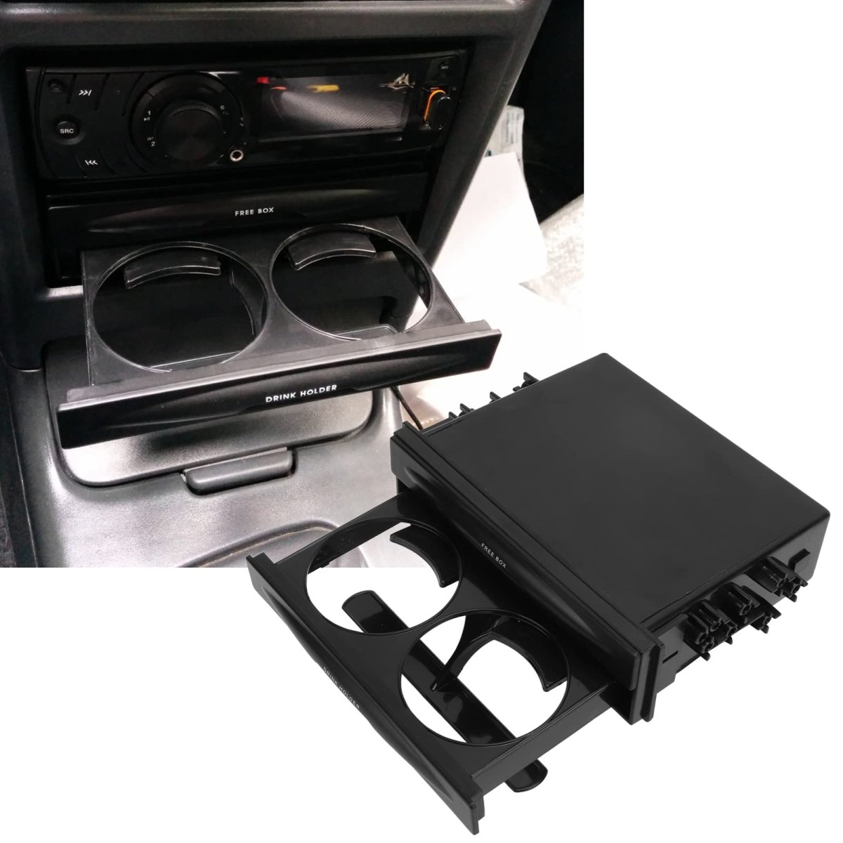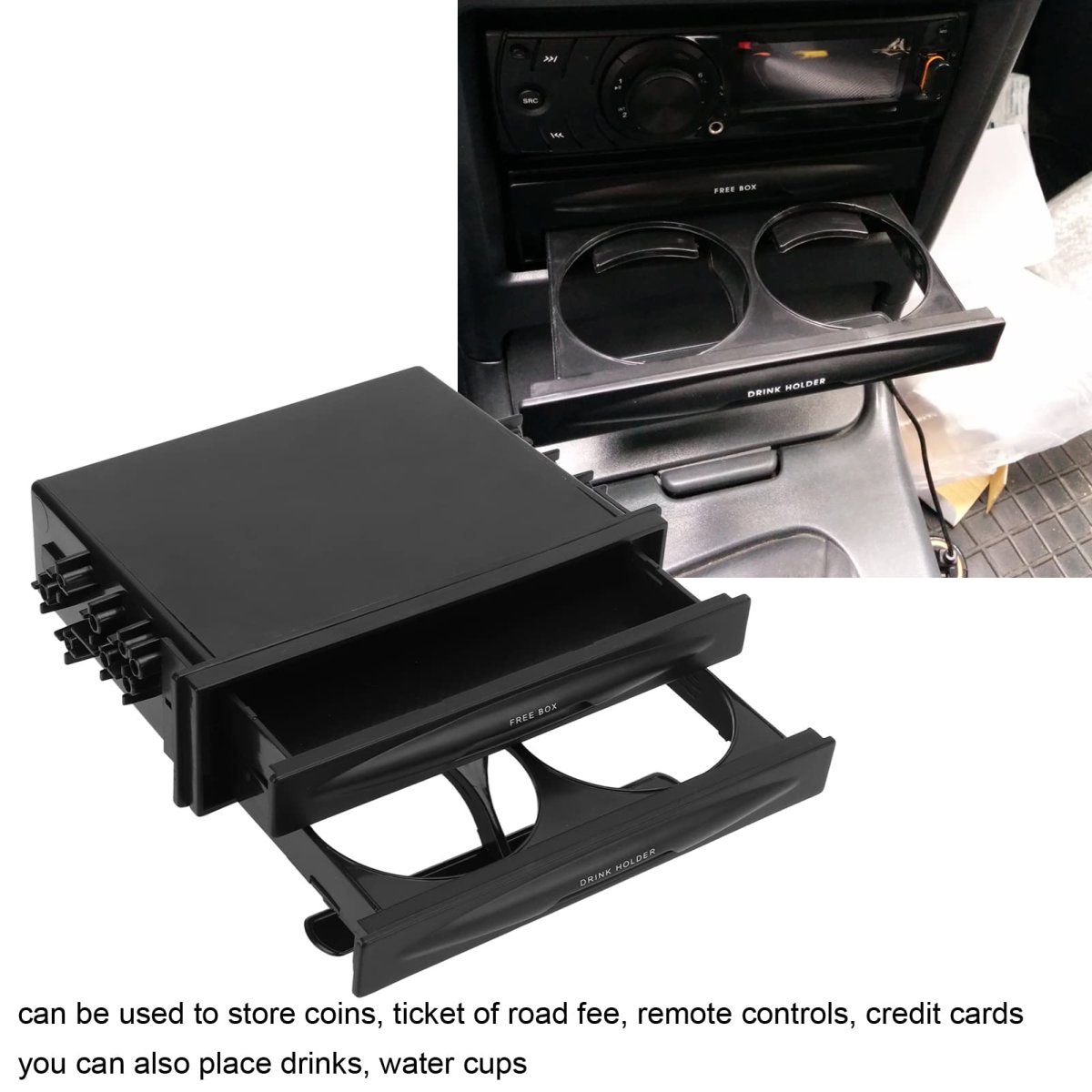 [Practical 2 Layer Design] Maximize car interior space and save room with a two-layer setup.. [Multipurpose Design] High-performance 2-in-1 storage with a drink cup holder for added convenience.. [Universal Fitment] Fits car radio spare position size of 173x48mm/6.81x1.89in with locking fasteners.. [Collecting Small Items] Easily store , tickets, remote controls, and credit cards for quick access.. [Premium Material] Made of ABS material for long-lasting use and added sturdiness..Other fine products
