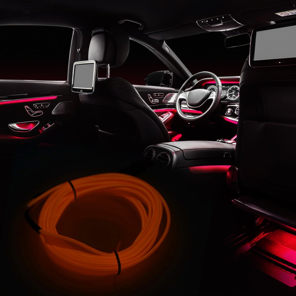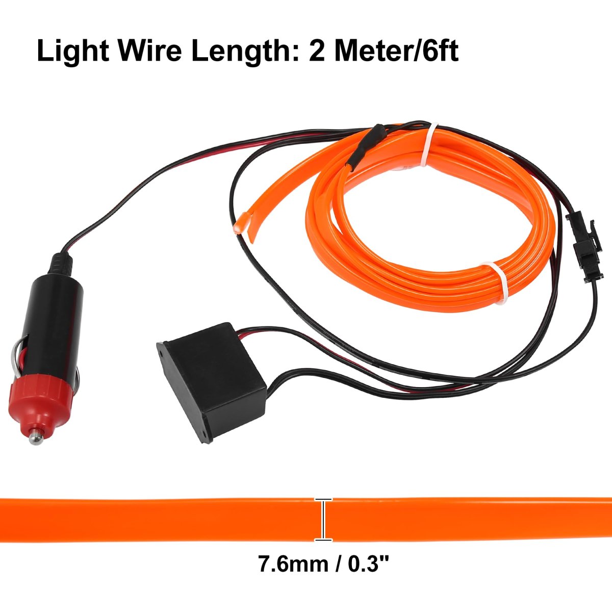 - 2 Meter 6ft Neon El Wire String Strip Orange Cold Light Glow With Cigarette Lighter For Car Interior Decoration