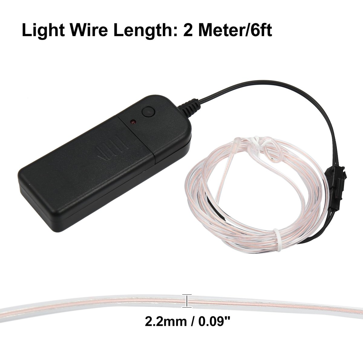 Measure: The light wire length is 2 Meter/6ft. Light Wire Diameter: 2.2mm / 0.09". The wire is flexible and waterproof, can be bent into any shape and suit for the car gap.. Fitment: It is a universal product that fits most of car's decoration. It provides a warm atmosphere.. Flexible: The EL wire is flexible and thin , very easy to bend into any shape. You will need adhesive tape to fix the shape and the EL wire can be cut into any length.. Durable Material: Made of metal and plastic that is soft, durable and long service life.. Good Replacement: It is a good replacement for the car to substitute the old or broken decoration light. It can provide a fashionable look for the car interior..Other fine products