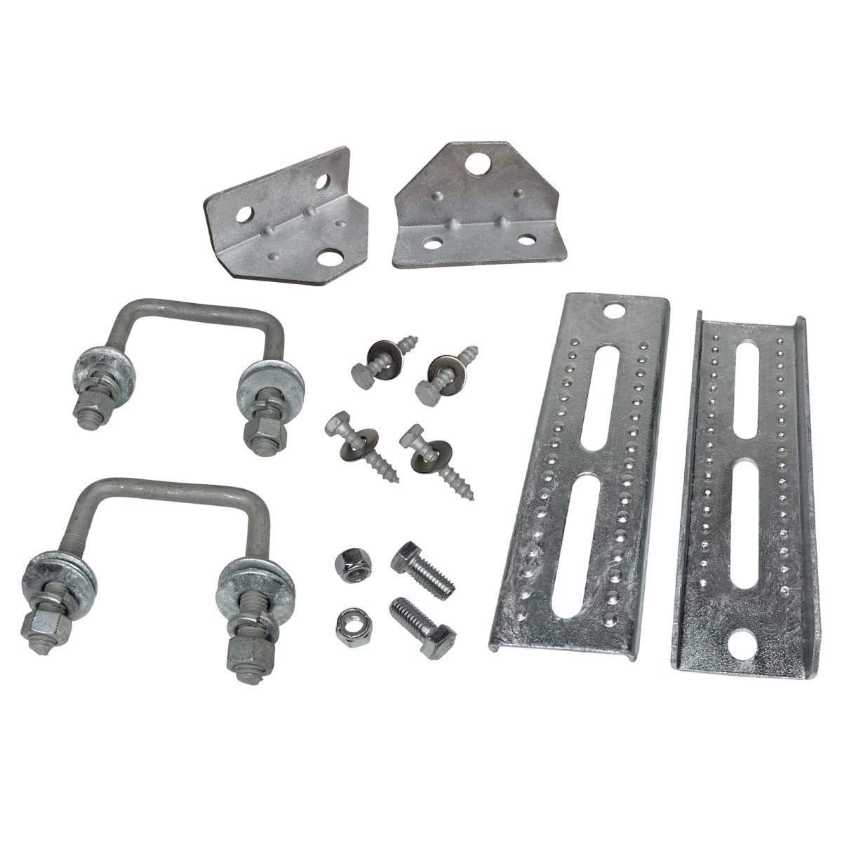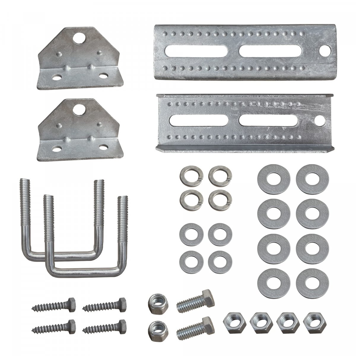 2 pack of 8" Swivel Bracket Kit for 2x3 cross member, ready to be installed onto your boat trailer!. Brackets made from heavy duty durable galvanized steel, adjustable design allows you to align the angle to contour to your boats hull, angled or flat. Zinc coated to prevent rusting and suitable for marine trailers and motor boats in saltwater, fresh water, coastal conditions and utility/land trailers in icy conditions. This swivel top style bunk bracket is a standard 8" tall with slotted holes for multiple mounting holes making this kit fully adjustable to meet your trailers needs. Kit includes: (2) swivel brackets, (2) bolster brackets, (2) square U-bolts, (4) hex nuts, (8) flat washers, (4) lock washers, (4) flat washers, (4) screws, (2) bolts, (2) hex nuts.Other fine products