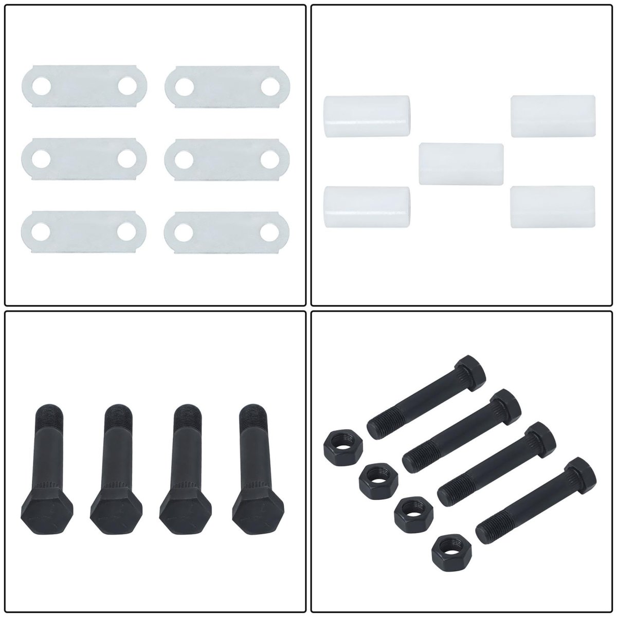 Fitment: Typically Compatible with 3,500lb to 7,200lb axle. Features: Nuts and bolts are suitable with each other, better fit, no loose. Material: Made of good quality alloy steel, with strong hardness and long service life. Package includes: 8 PCS 9/16 nylon bushings, 8 PCS 3 1/8 shackle straps, 14 PCS 9/16-18 x 3 long shackle bolts and locking Nuts.Other fine products