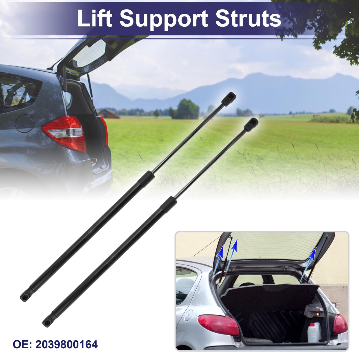 Fitment:for Mercedes-Benz C-class Coupe 2001-2008. OE Number:2039800164. Specification:Extend length: 58cm/22.83", Compressed length: 38.5cm/15.16"; Color: Black; Placement on vehicle: Rear Hatch. Product Characteristics:Gas Springs printed a waterproof material on the surface, dustproof, easy to clean. Lift Support Strut is made of durable Carbon Steel material, strong and durable to support Rear Hatch.. Package List:2 Pcs Lift Supports Strut.Other fine products