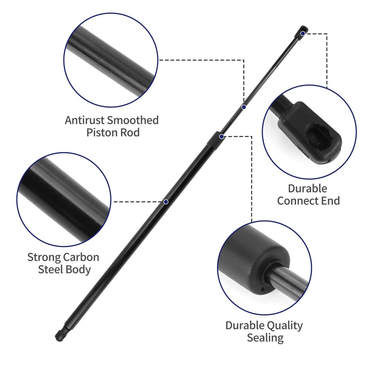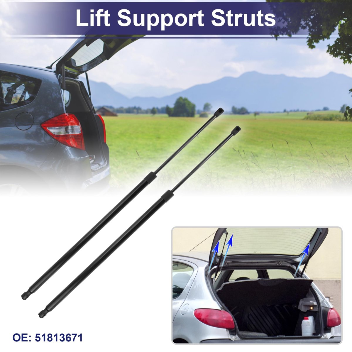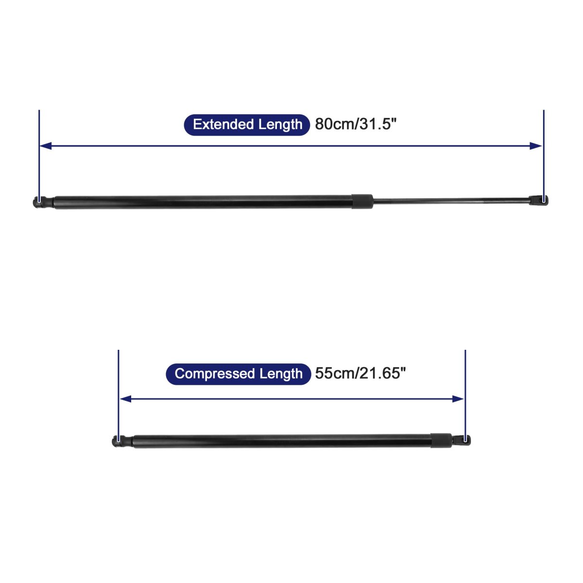 Fitment:for Fiat DOBLO Box Body / Estate 2010. OE Number:51813671. Specification:Extend length: 80cm/31.5", Compressed length: 55cm/21.65"; Color: Black; Placement on vehicle: Rear Hatch. Product Characteristics:Gas Springs printed a waterproof material on the surface, dustproof, easy to clean. Lift Support Strut is made of durable Carbon Steel material, strong and durable to support Rear Hatch.. Package List:2 Pcs Lift Supports Strut.