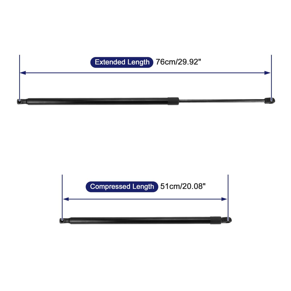 Fitment:for Ford KUGA II (DM2) Closed Off-Road Vehicle 2012. OE Number:1790927. Specification:Extend length: 76cm/29.92", Compressed length: 51cm/20.08"; Color: Black; Placement on vehicle: Rear Hatch. Product Characteristics:Gas Springs printed a waterproof material on the surface, dustproof, easy to clean. Lift Support Strut is made of durable Carbon Steel material, strong and durable to support Rear Hatch.. Package List:2 Pcs Lift Supports Strut.Other fine products