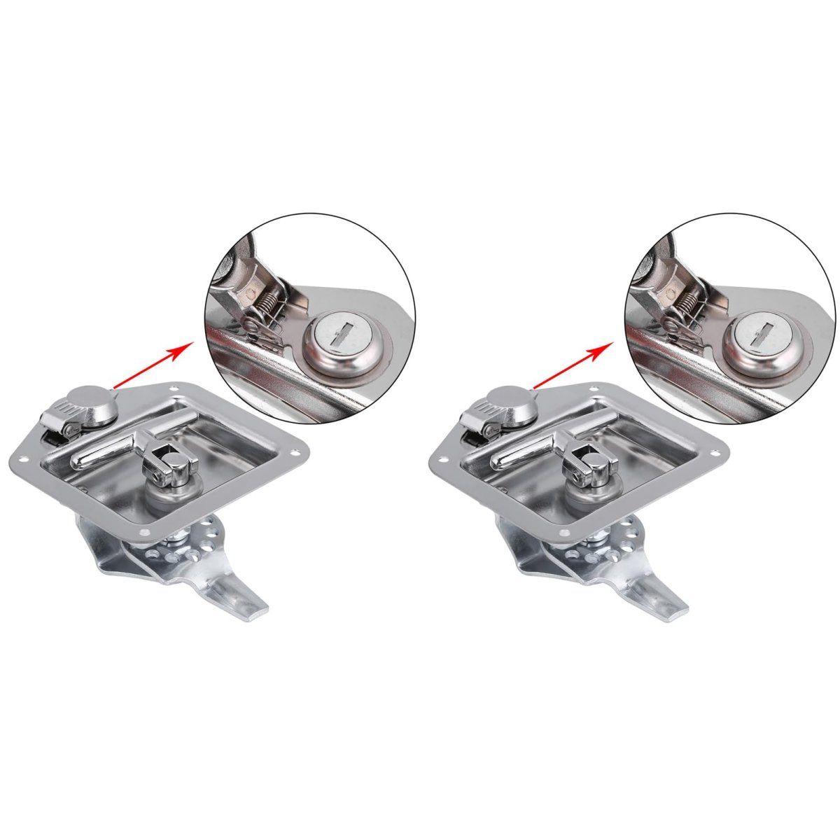 - 2 Pcs Stainless Steel Folding T Shape Handle Lock Tool Box Keys Latch Door Gasket Truck For Trailer